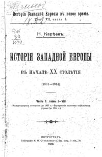 Первые тома вышли в начале девяностых годов 19 века и, посвященные- один «переходу от средних веков к новому времени», другой — «реформации и политической жизни в XVI и XVII вв.», третий — «XVIII веку и революции», — возникли из читанных им общих курсов новой истории, имевших своей целью выяснить значение двух главных переворотов в жизни европейского Запада за последние четыре века, т.е., реформации и революции — в связи с общим характером новой истории с её отличием от средневековой. Однако, позднее, Кареев решился раздвинуть границы первых задач и довести повествание до современнго ему положения дел.