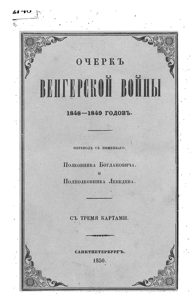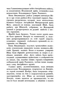 Данный очерк является переводом австрийского сочинения, посвященного событиям 1848-1849 годов. Перевод выполнен полковником Богдановичем и подполковником Лебедевым. Книга, выпущенная менее чем через год после описываемых событий не может похвастаться богатством точных фактических сведений, но содержит интересный свежий взгляд на произошедние события одной из заинтересованных сторон.
