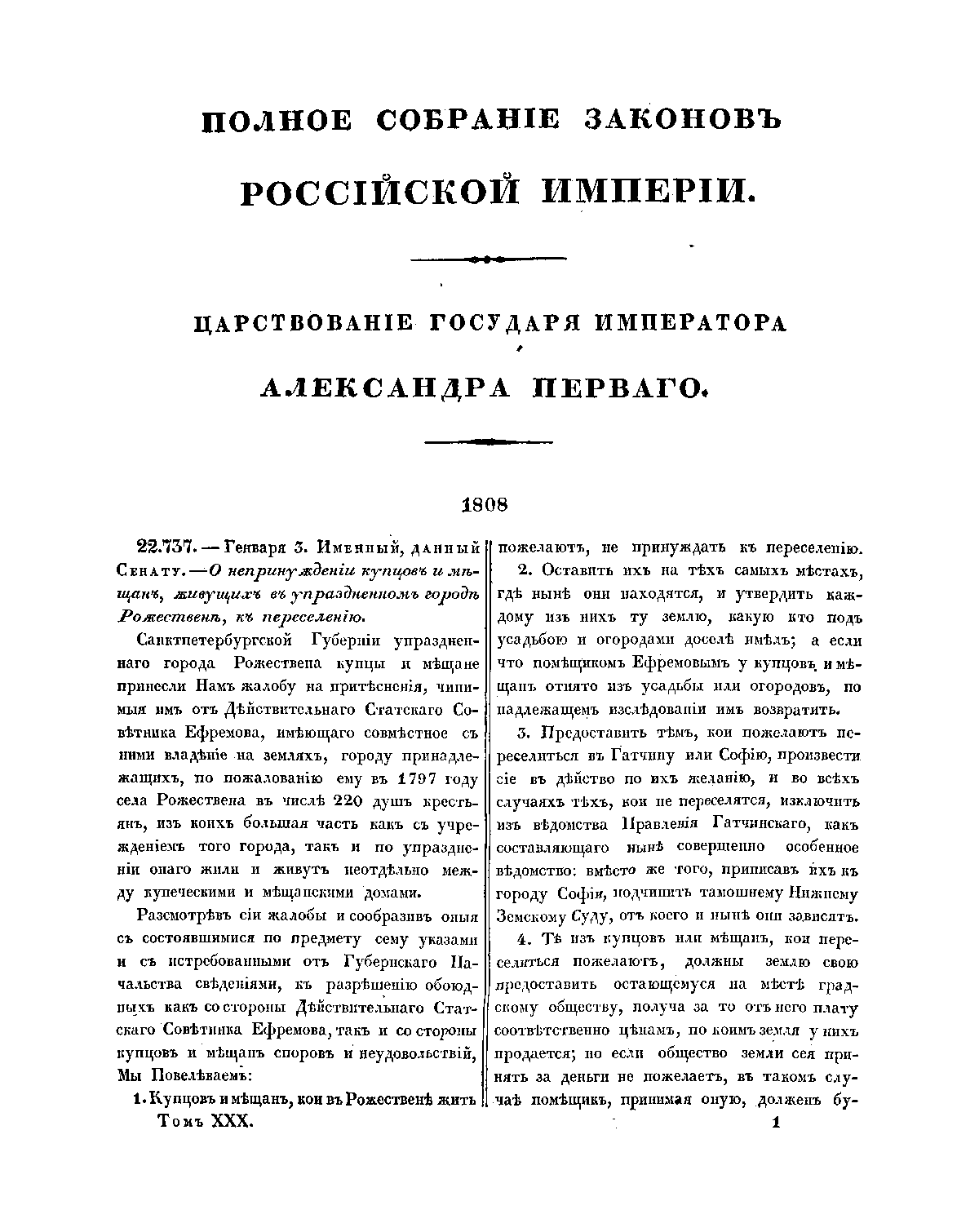 Полное собрание законов Российской Империи. Собрание Первое. Том XXX