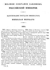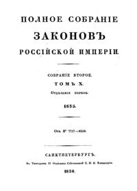 Полное собрание законов Российской Империи. Собрание Второе. Том X. Отделение 1