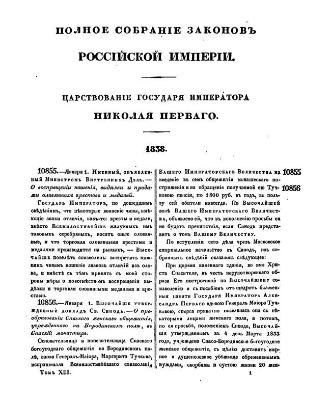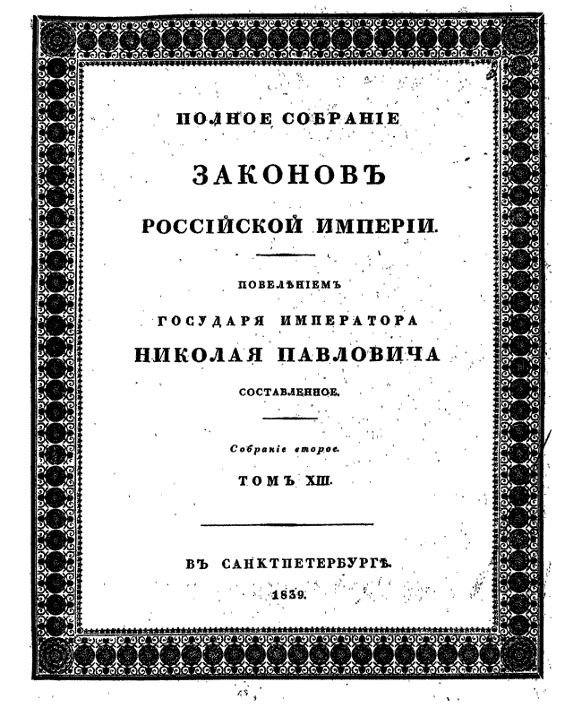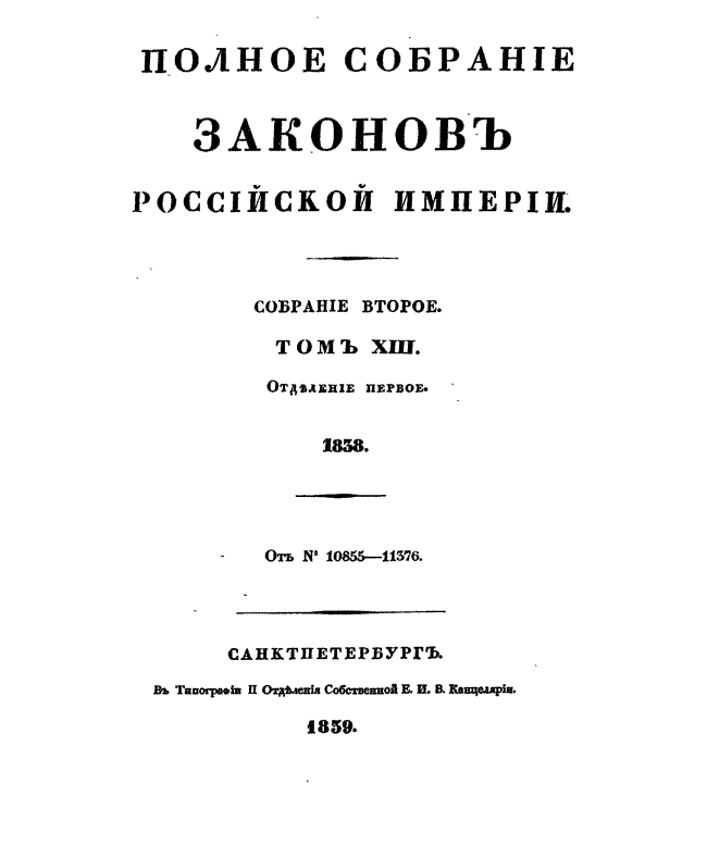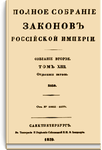 Полное собрание законов Российской Империи. Собрание Второе. Том XIII. Отделение 1