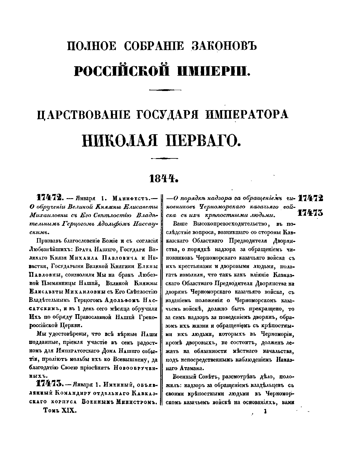 Полное собрание законов Российской Империи. Собрание Второе. Том XIX. Отделение 1