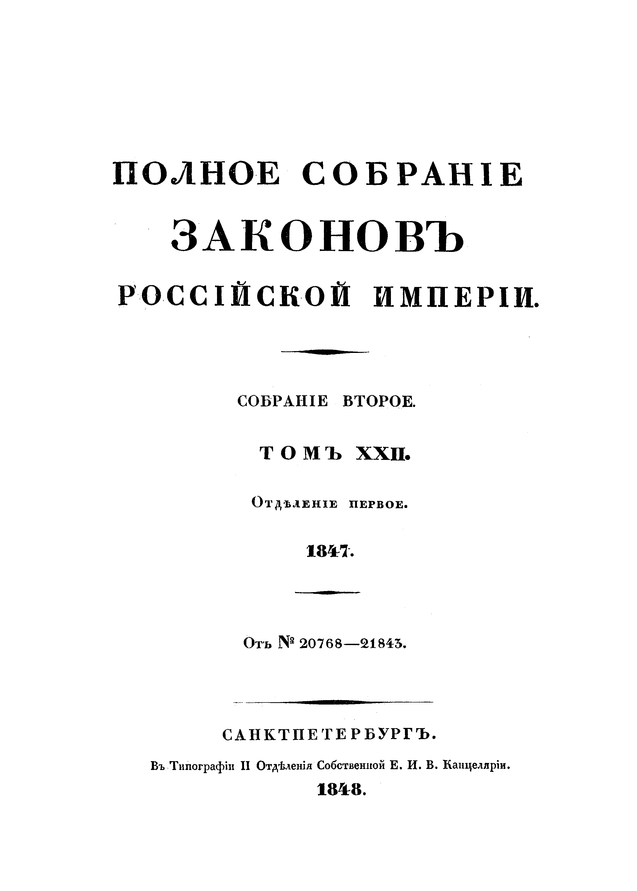 Полное собрание законов Российской Империи. Собрание Второе. Том XXII. Отделение 1
