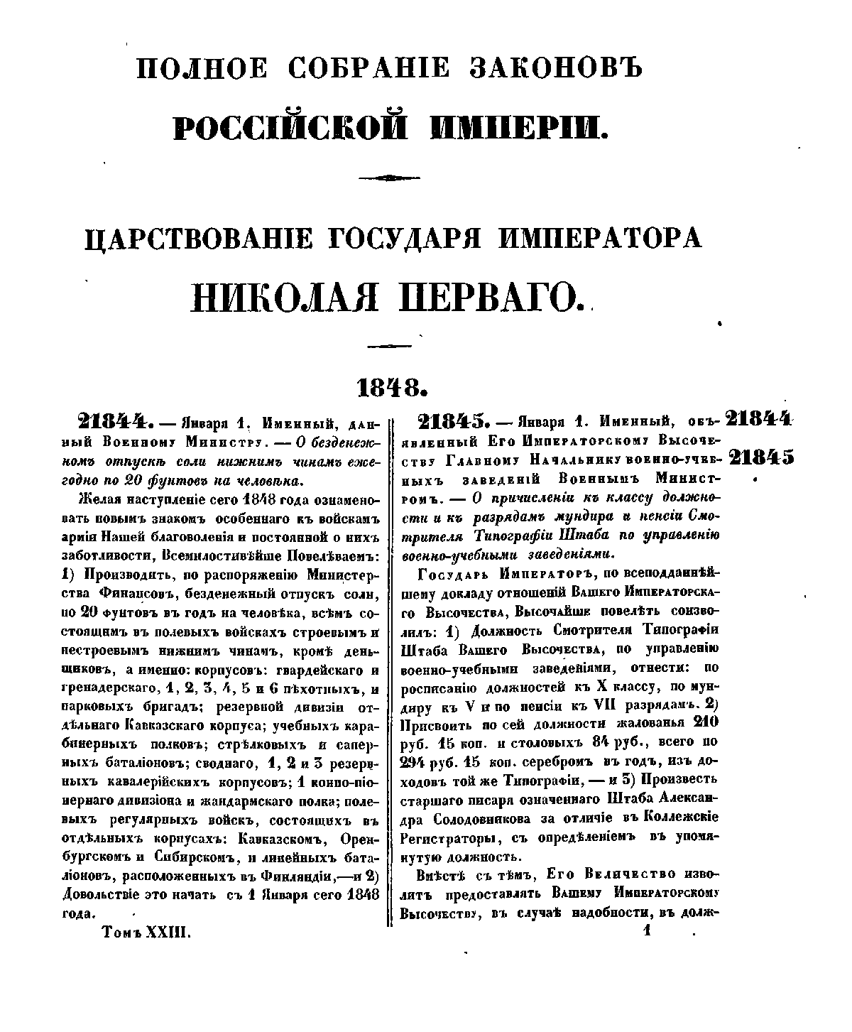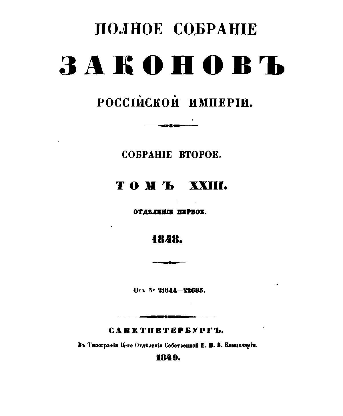 Полное собрание законов Российской Империи. Собрание Второе. Том XXIII. Отделение 1