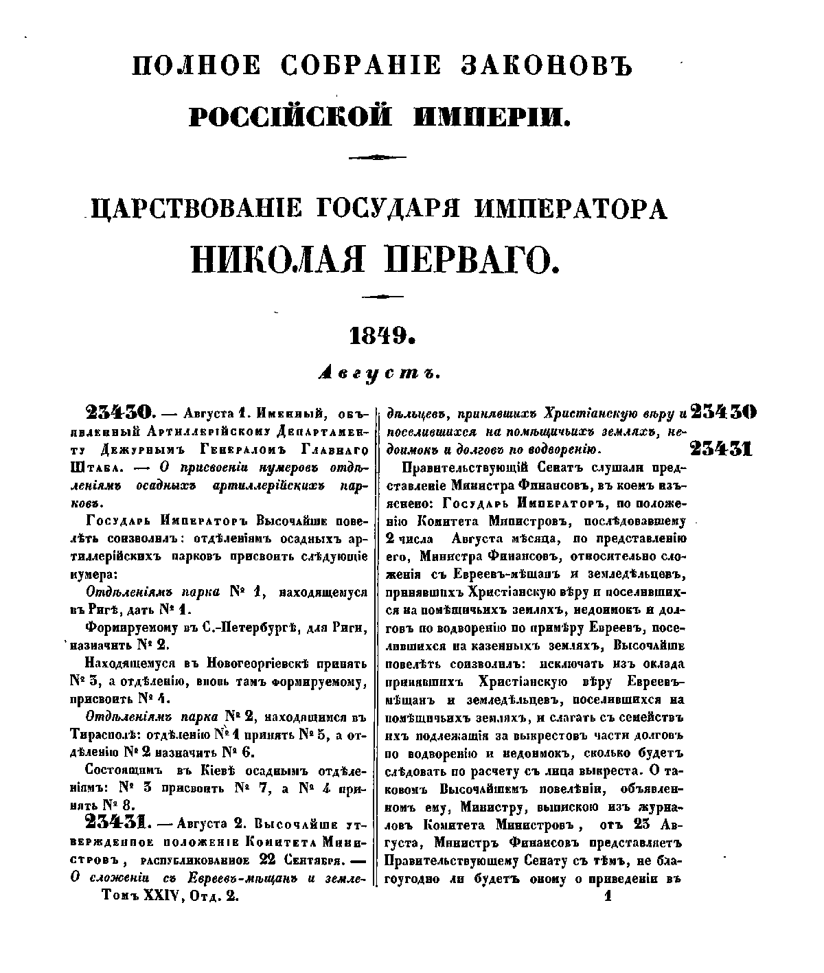 Полное собрание законов Российской Империи. Собрание Второе. Том XXIV. Отделение 2