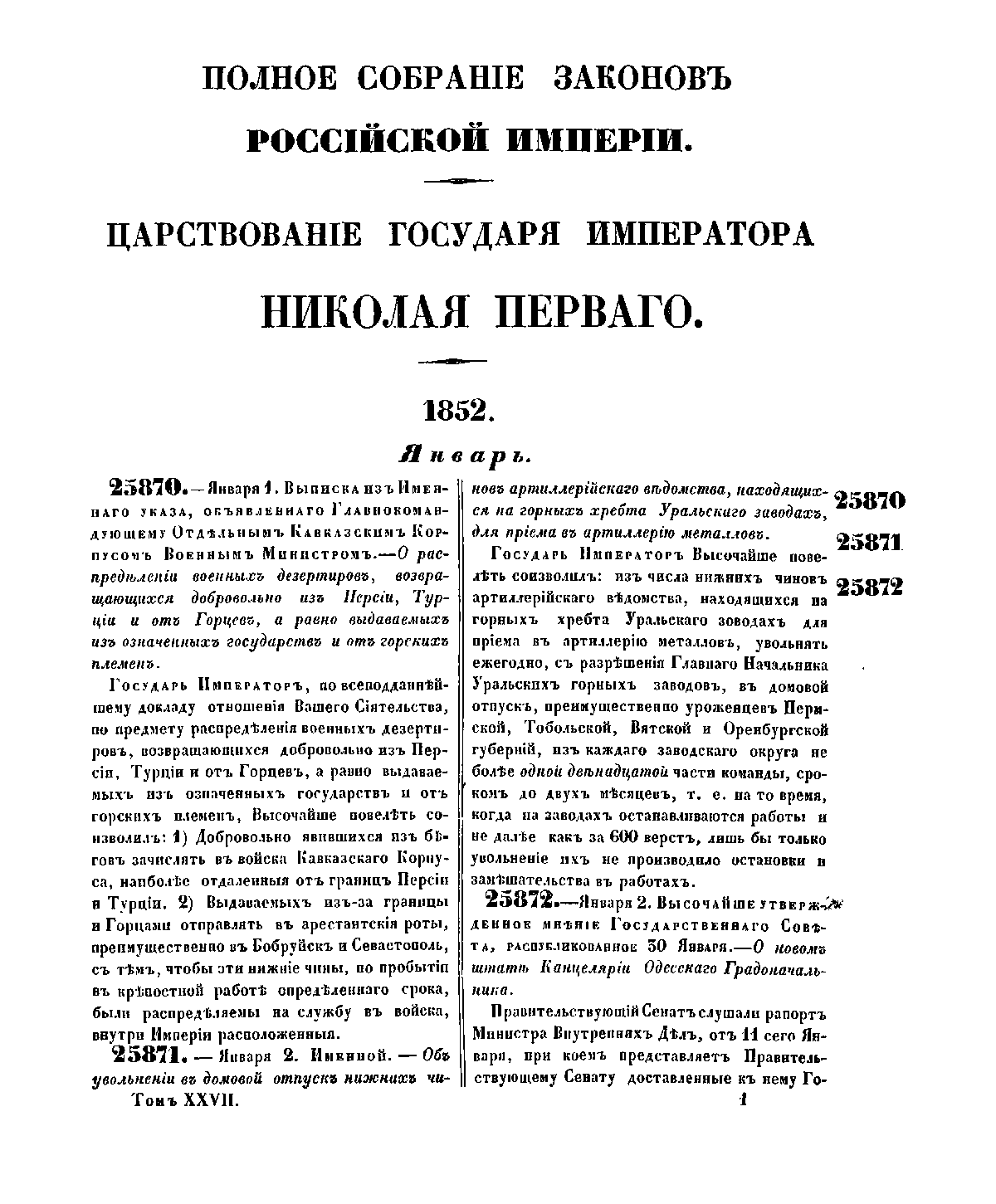 Полное собрание законов Российской Империи. Собрание Второе. Том XXVII. Отделение 1