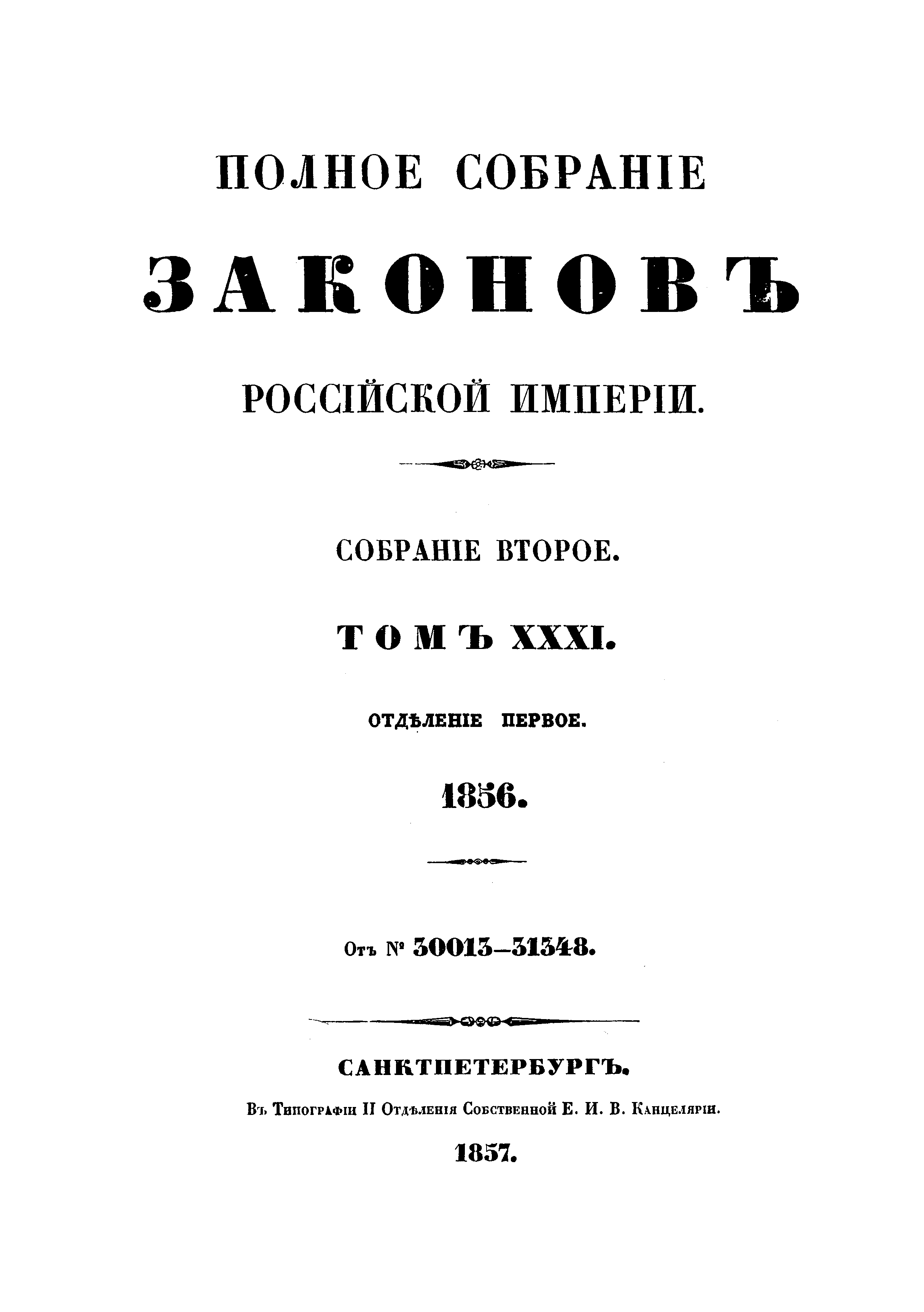 Полное собрание законов Российской Империи. Собрание Второе. Том XXXI. Отделение 1
