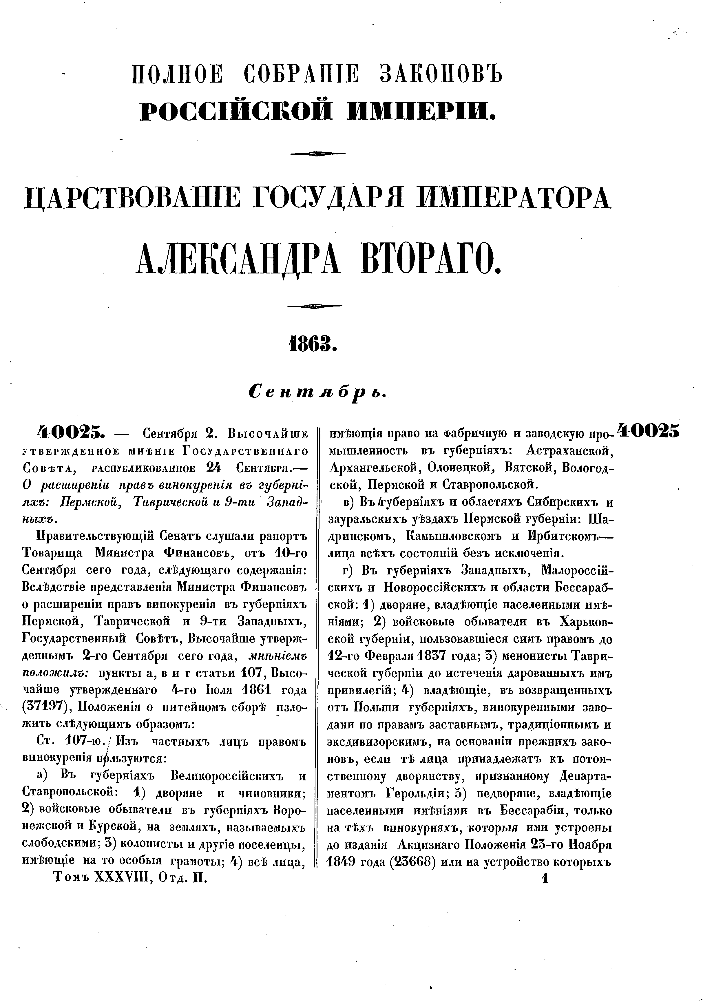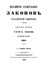 Полное собрание законов Российской Империи. Собрание Второе. Том XXXVIII. Отделение 2