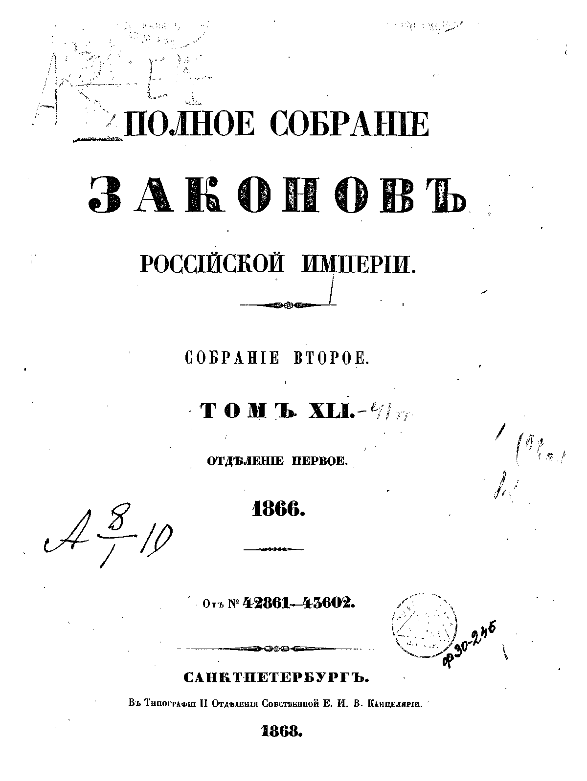 Полное собрание законов Российской Империи. Собрание Второе. Том XLI. Отделение 1