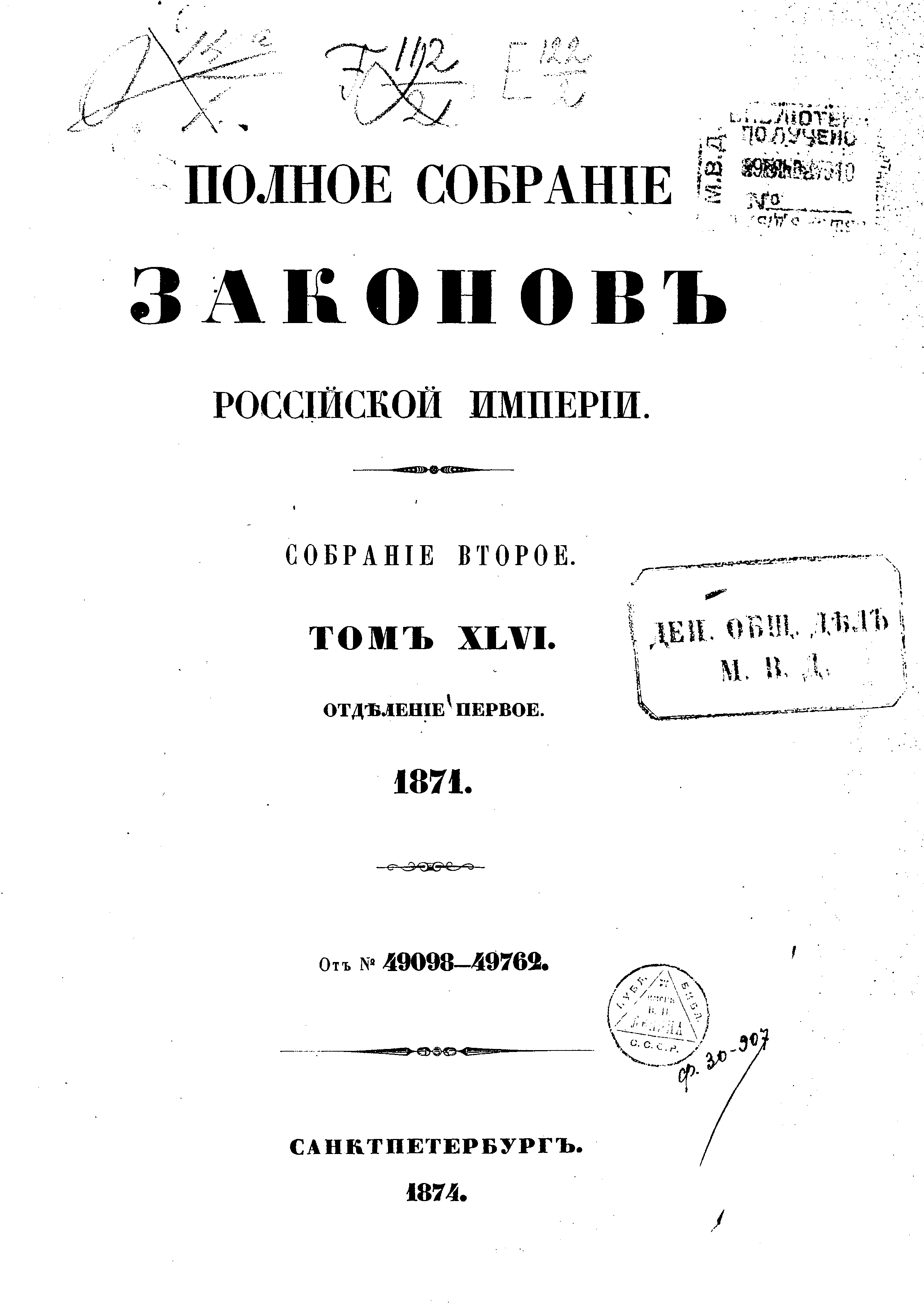 Полное собрание законов Российской Империи. Собрание Второе. Том XLVI. Отделение 1