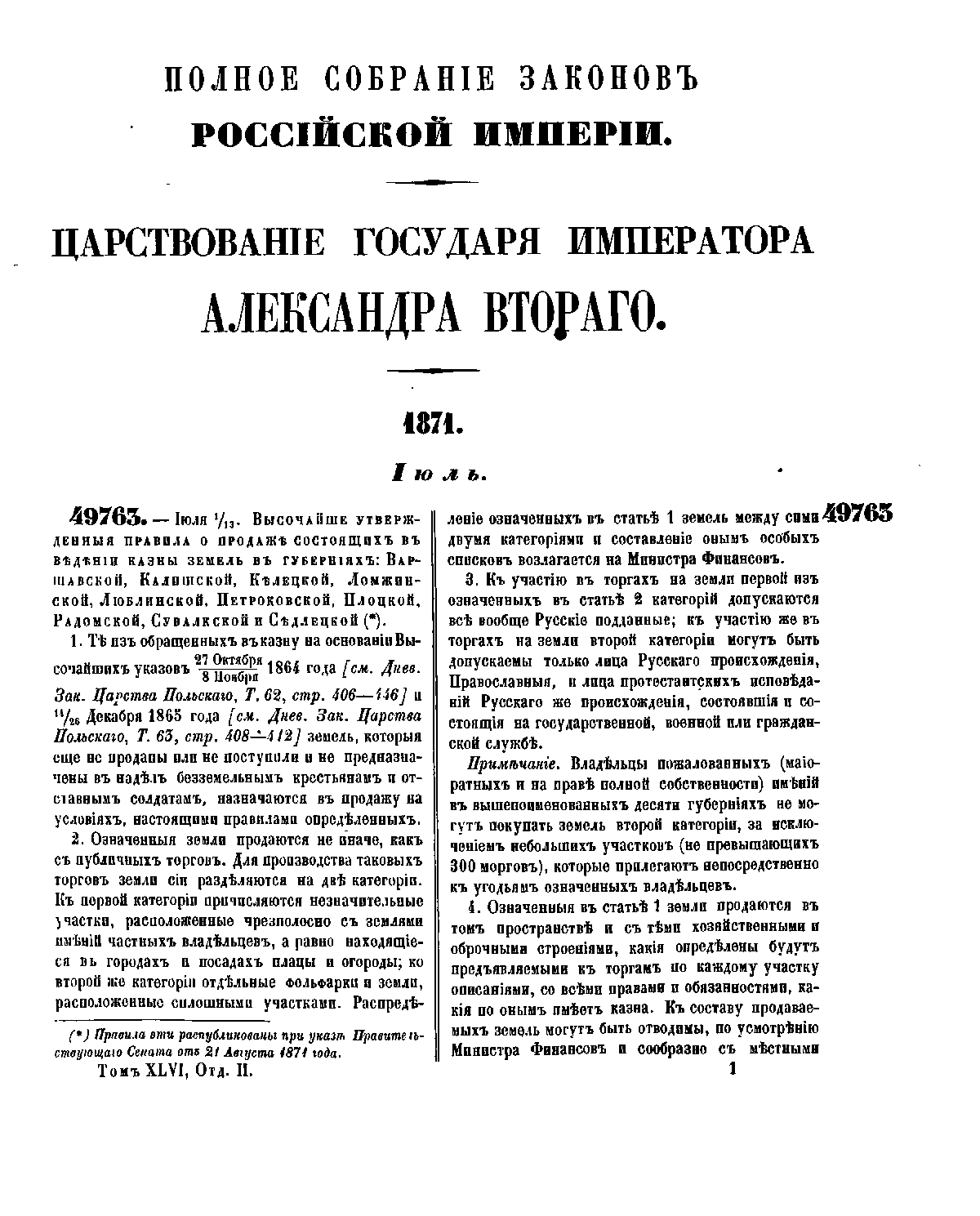 Полное собрание законов Российской Империи. Собрание Второе. Том XLVI. Отделение 2