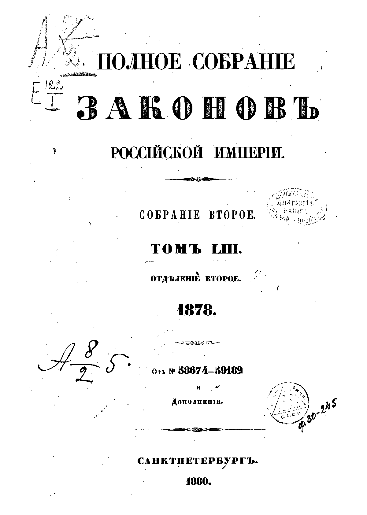 Полное собрание законов Российской Империи. Собрание Второе. Том LIII. Отделение 2