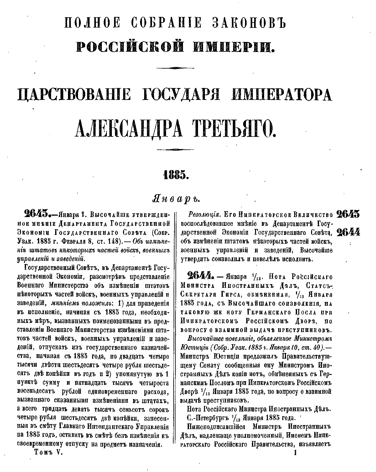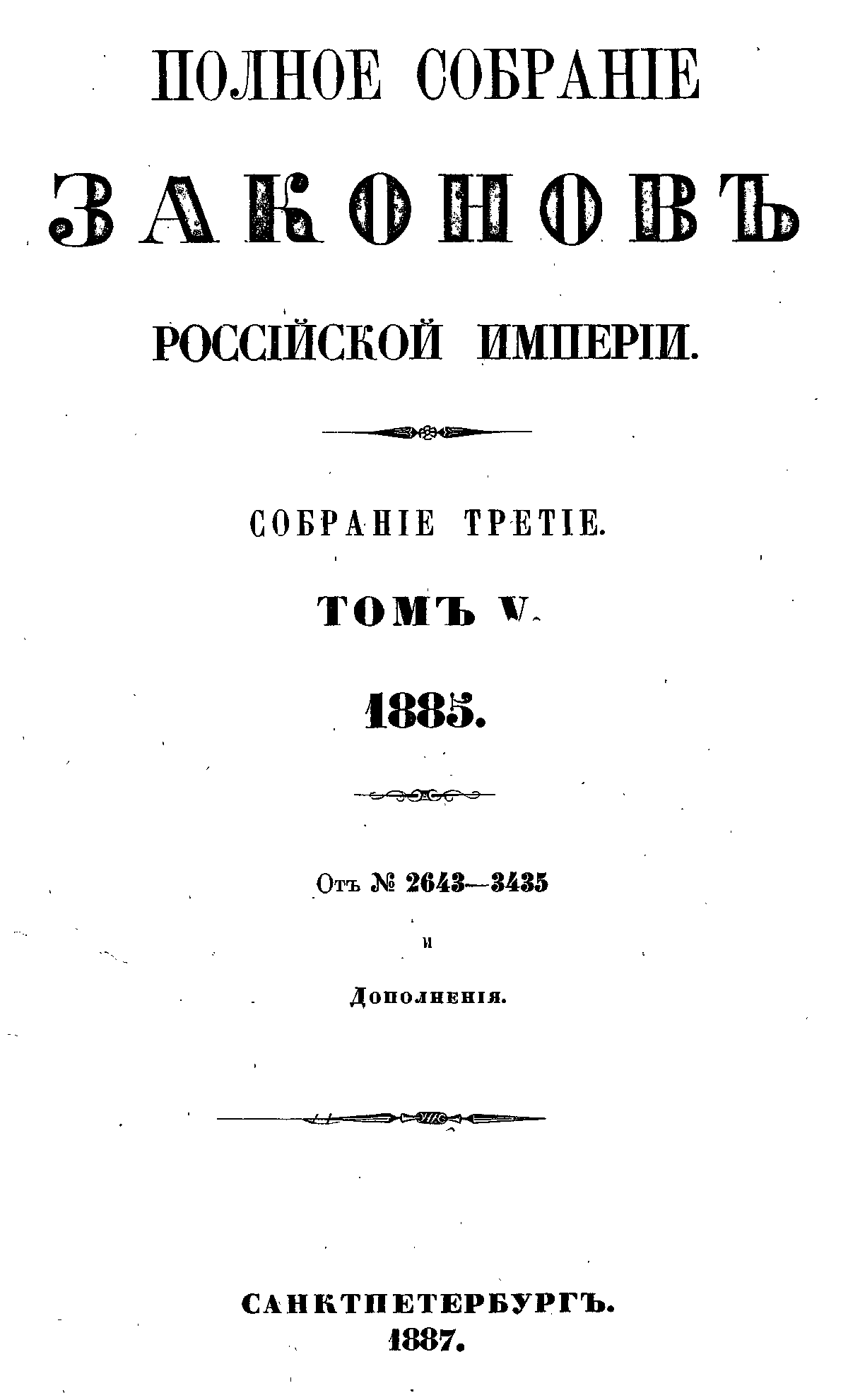 Полное собрание законов Российской Империи. Собрание Третье. Том V