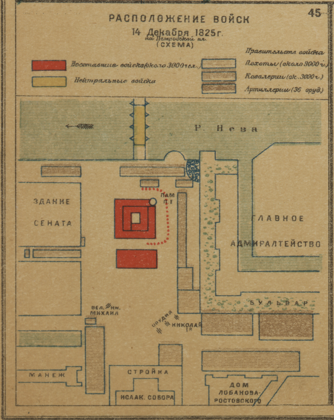Расположение войск 14 декабря 1825 года на Петровской площади (схема)