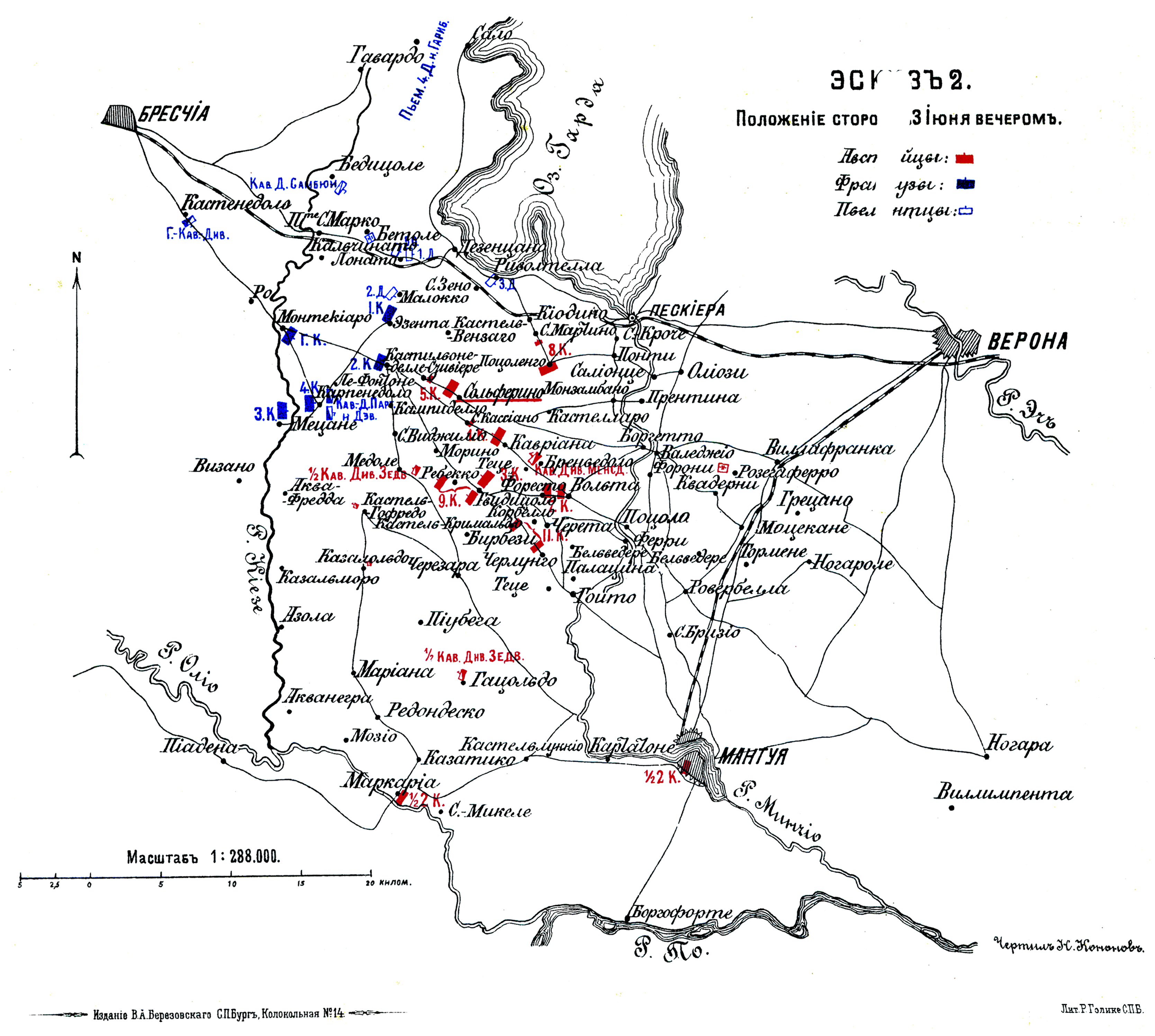 Сражение при Сольферино. 24 июня 1859 года. A. Эскиз 2. Положение сторон 23 июня вечером