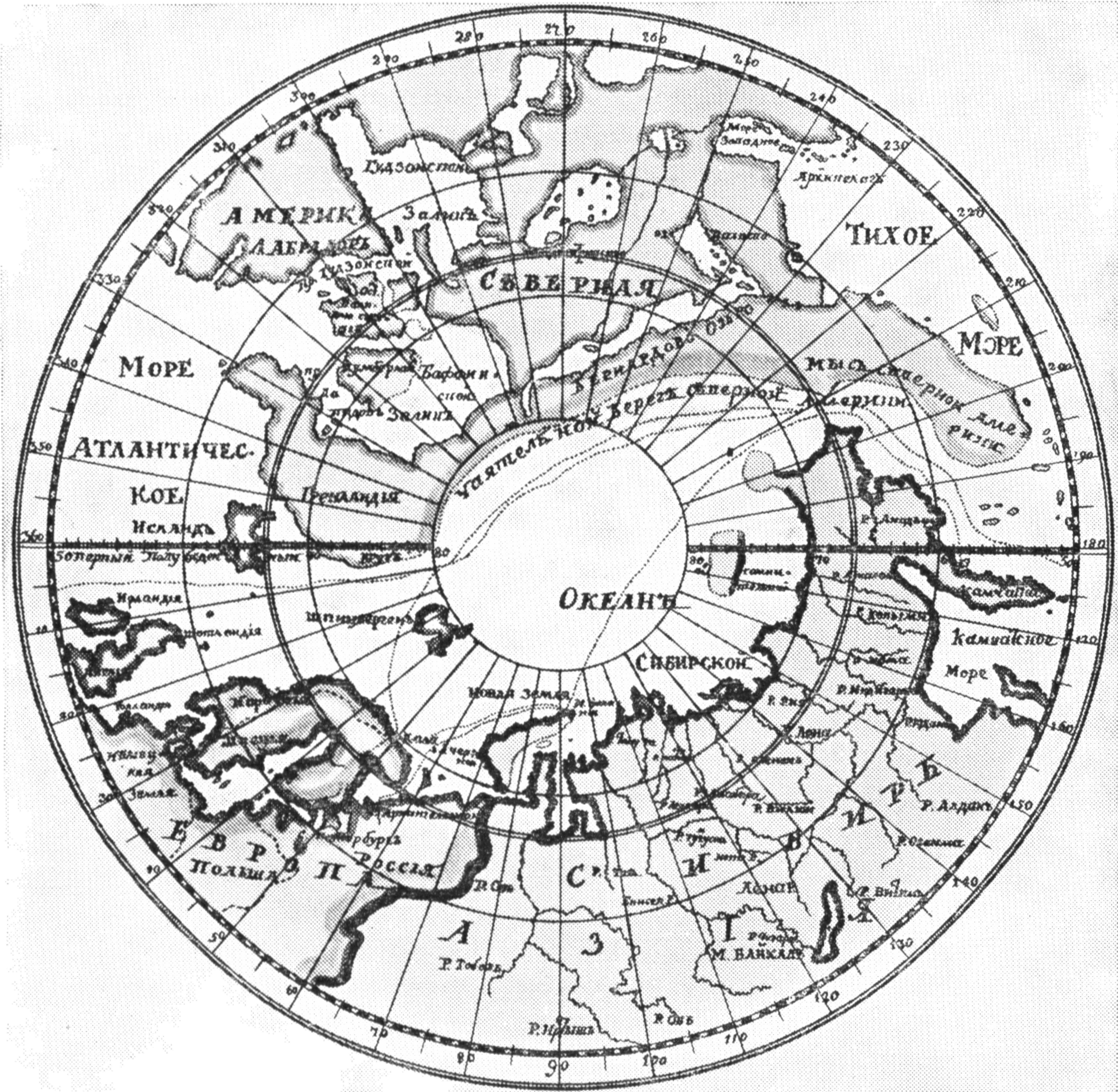Полярная карта, приложенная к рукописи "Краткое описание разных путешествий по северным морям и показание возможного прохода Сибирским океаном в Восточную Индию"