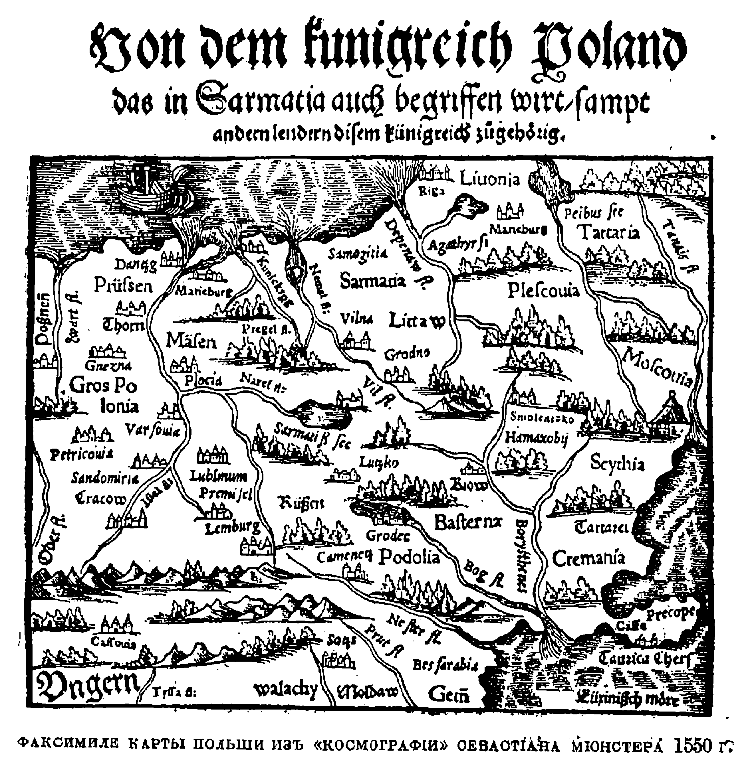Польша из "Космографии" Себастиана Мюнстера, 1550 год
