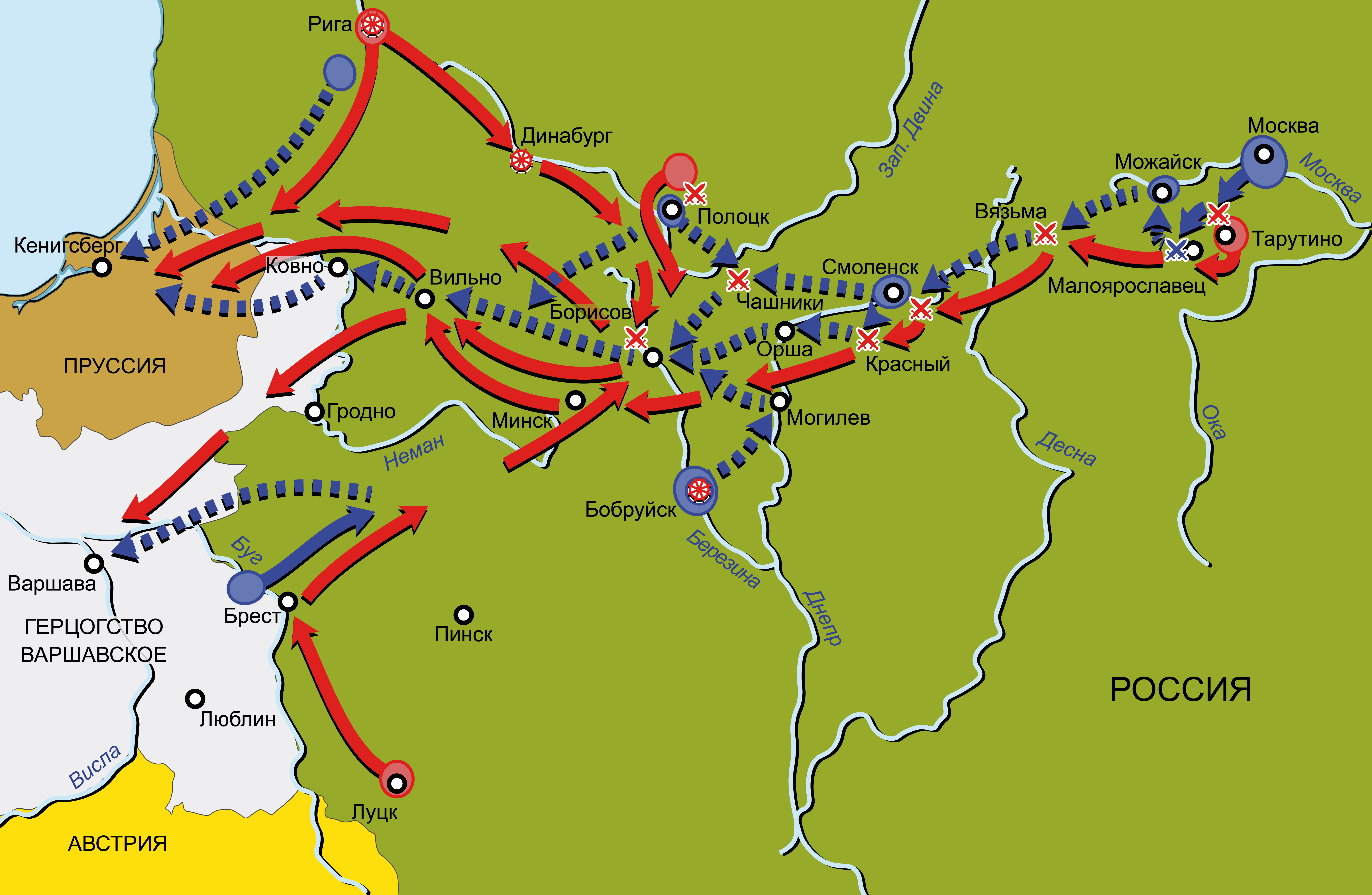 Шестая антифранцузская коалиция 1812–1814 гг. Карта кампании в России в октябре-декабре 1812 г.
