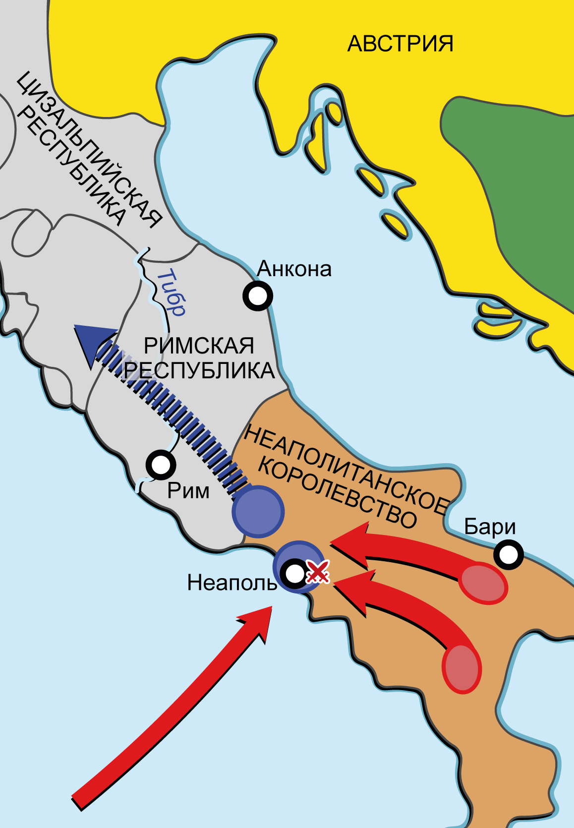 Вторая антифранцузская коалиция 1798–1802 гг. Карта кампании в Центральной и Южной Италии в 1799 г.