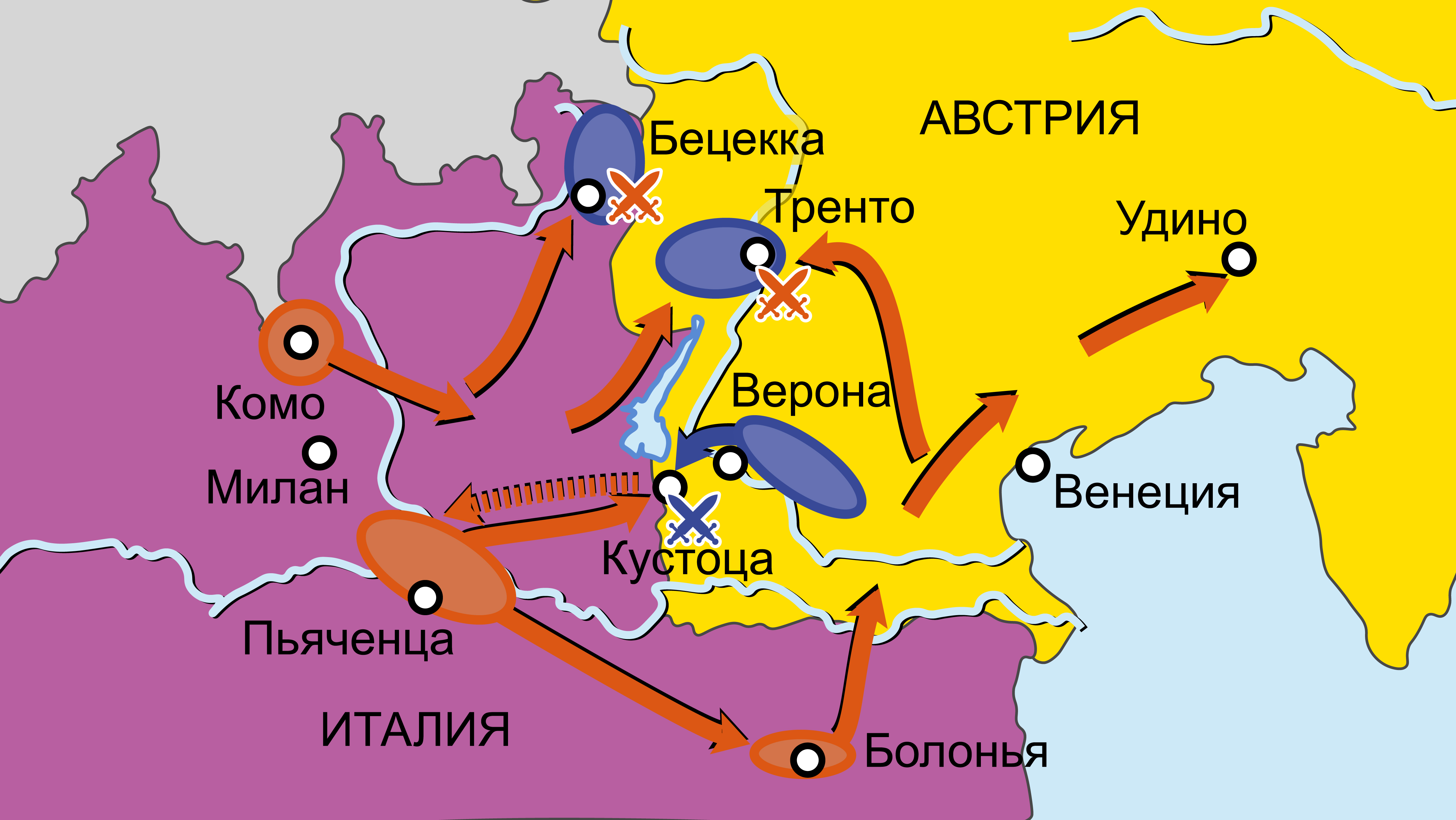Австро-прусско-итальянская война 1866 г. Карта кампаний 1866 г. в Италии