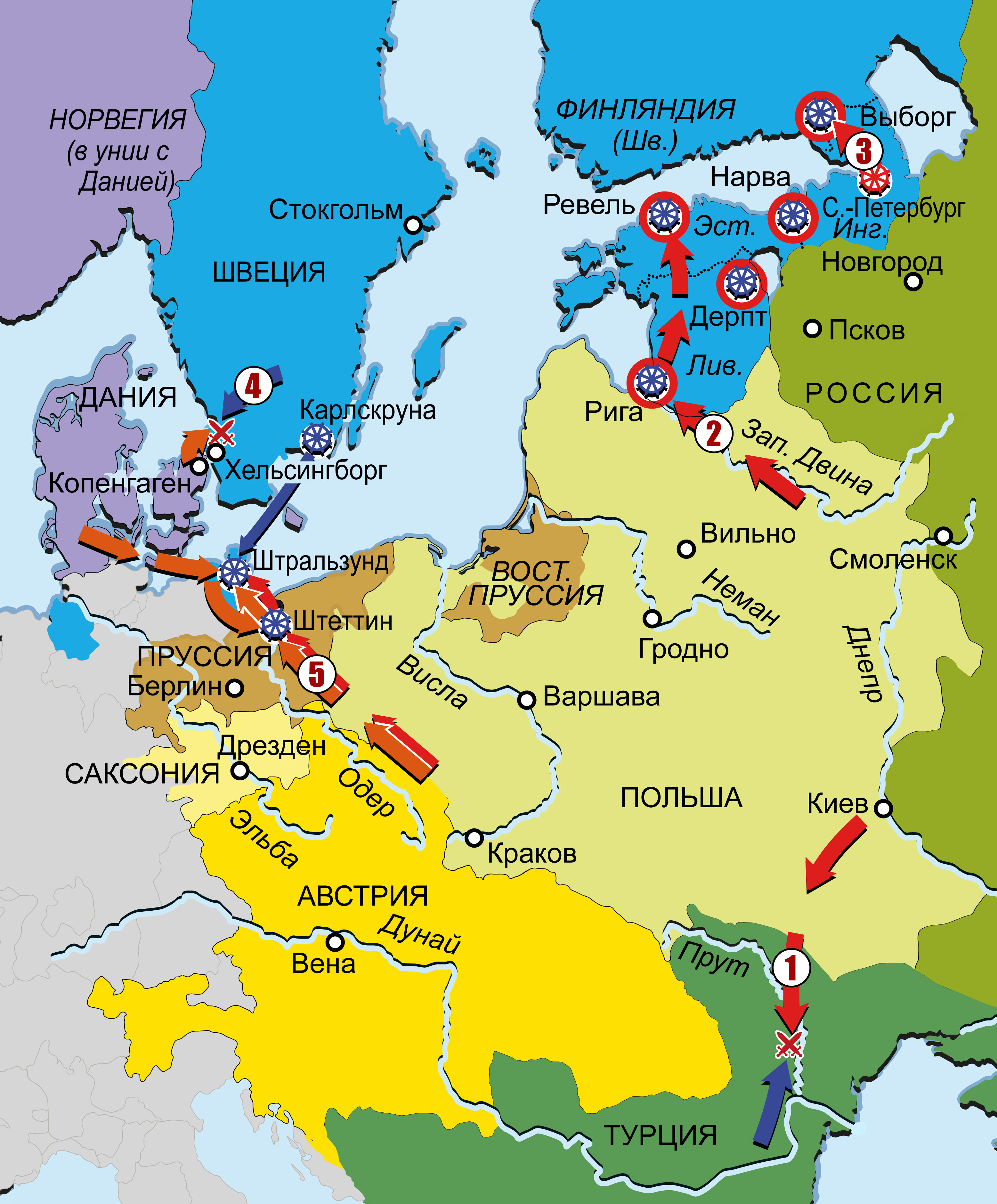 Северная война 1700-1721. Карта кампаний 1710–1711 гг.