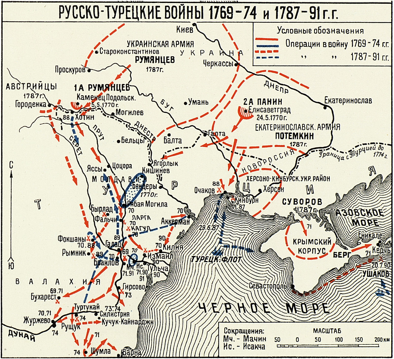 Карта: Русско-турецкие войны 1759-1774 и 1787-1791 гг