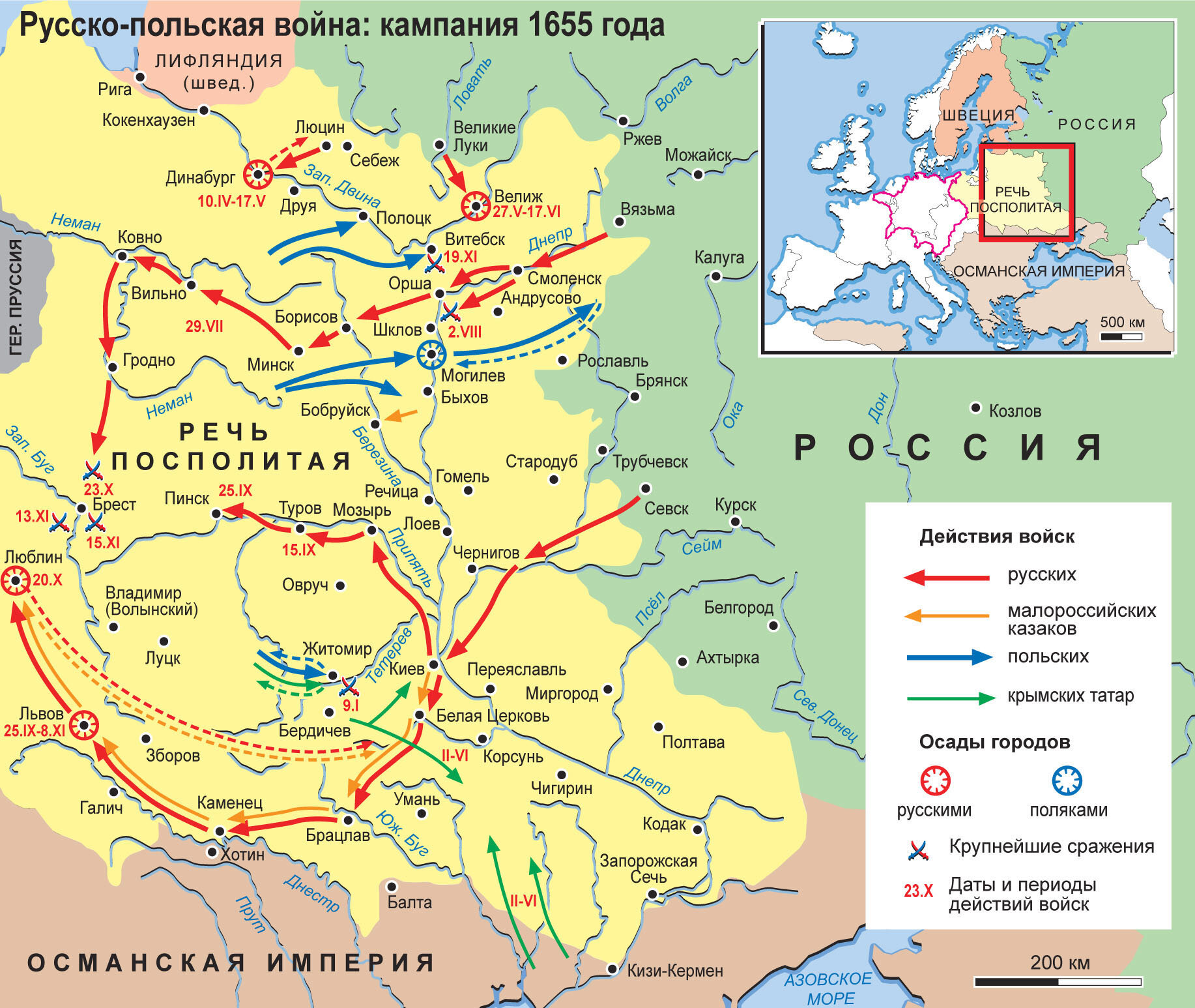 Карта: Русско-польская война 1654–1667 гг. Кампания 1655 г.