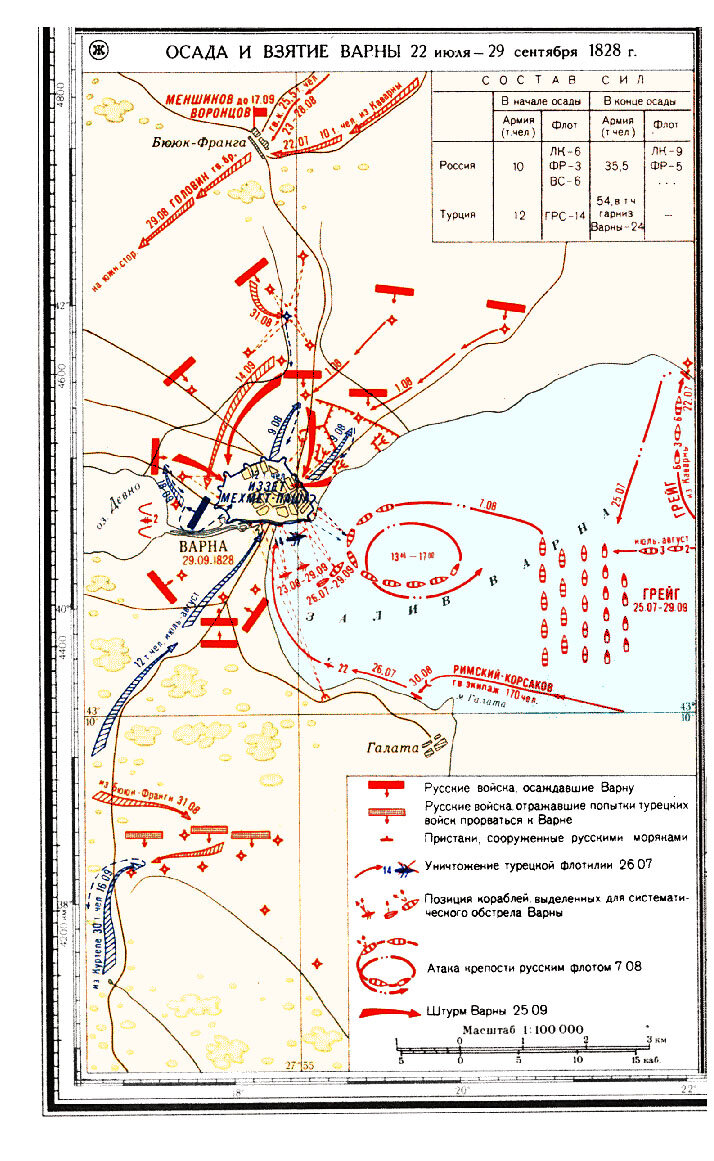 Карта: Осада и взятие Варны 22 июля — 29 сентября 1828 г.