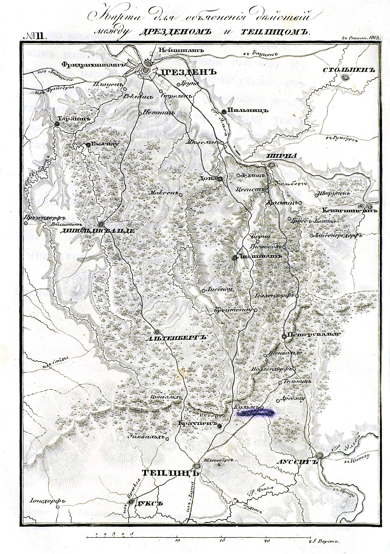 Карта для объяснения действий между Дрезденом и Теплицем