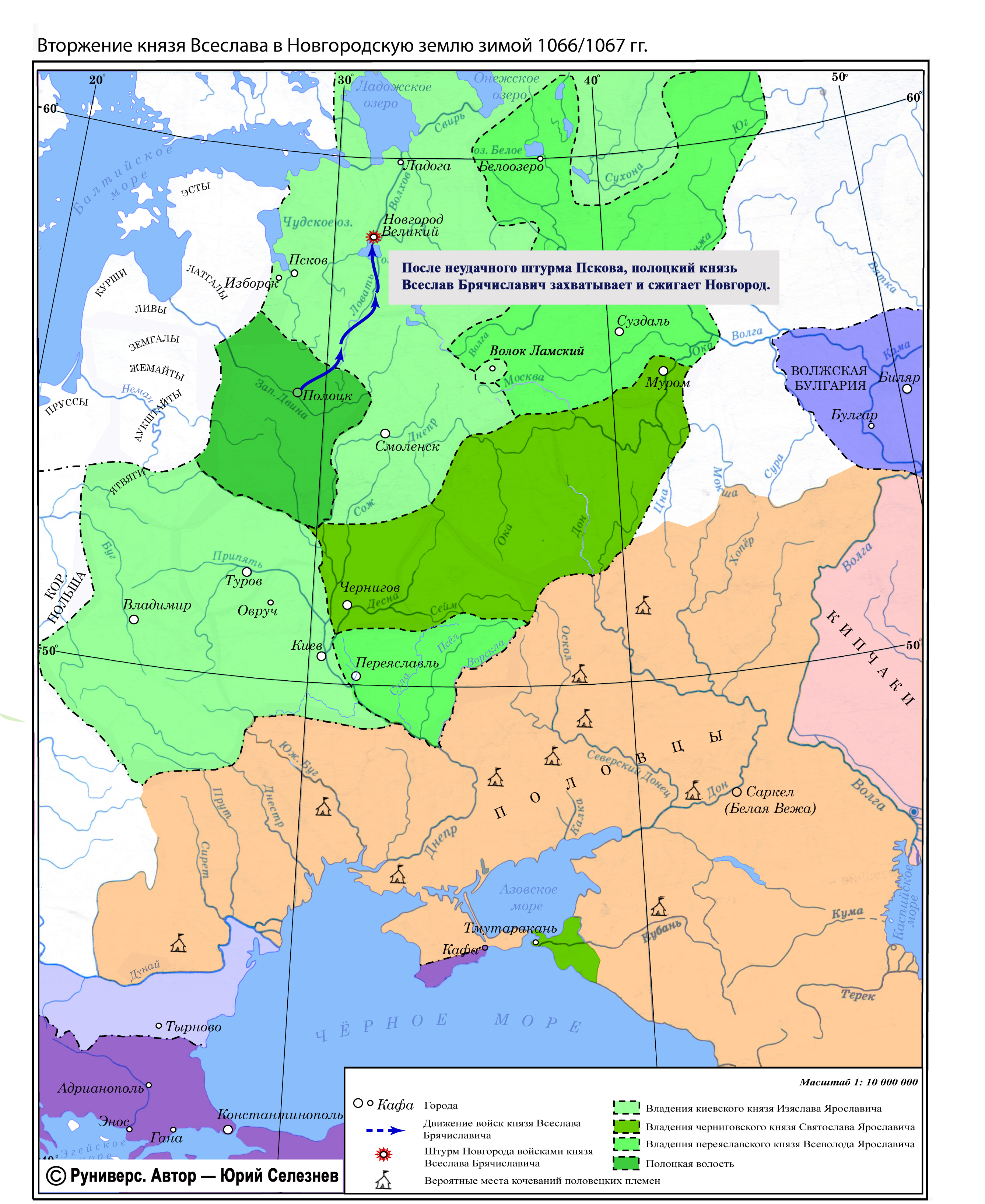 После неудачного штурма Пскова, полоцкий князь Всеслав Брячиславич захватывает и сжигает Новгород.