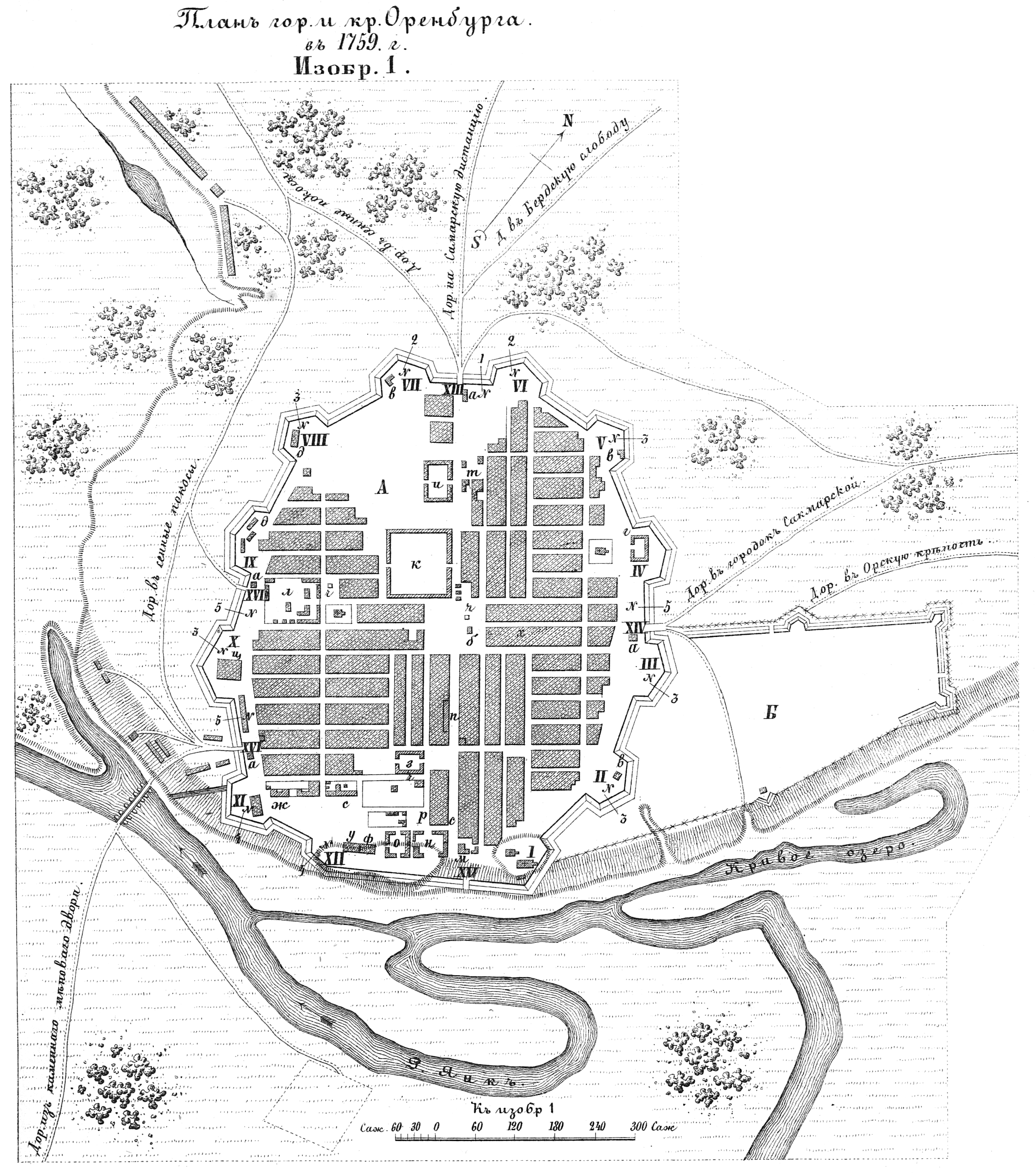 Пограничные линии. План города и крепости Оренбурга в 1759 году