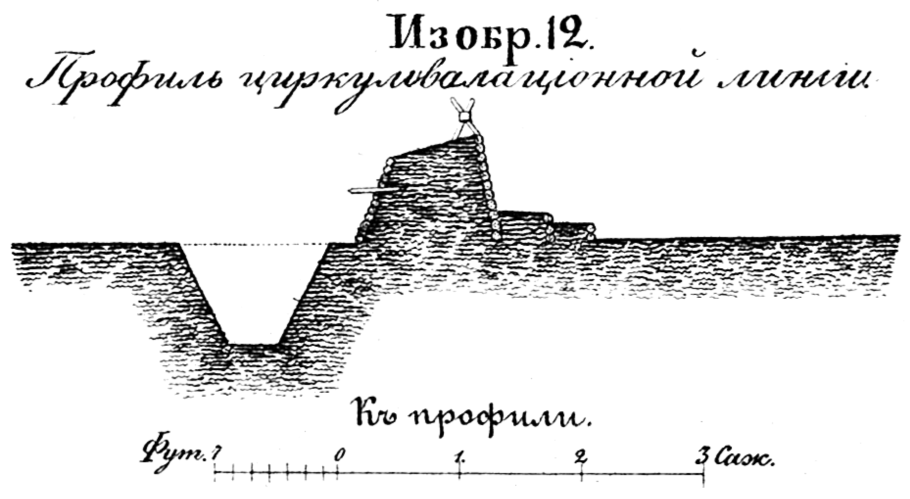 Осада Нарвы в 1700 году. Профиль циркуловалационной линии. Изобр.12