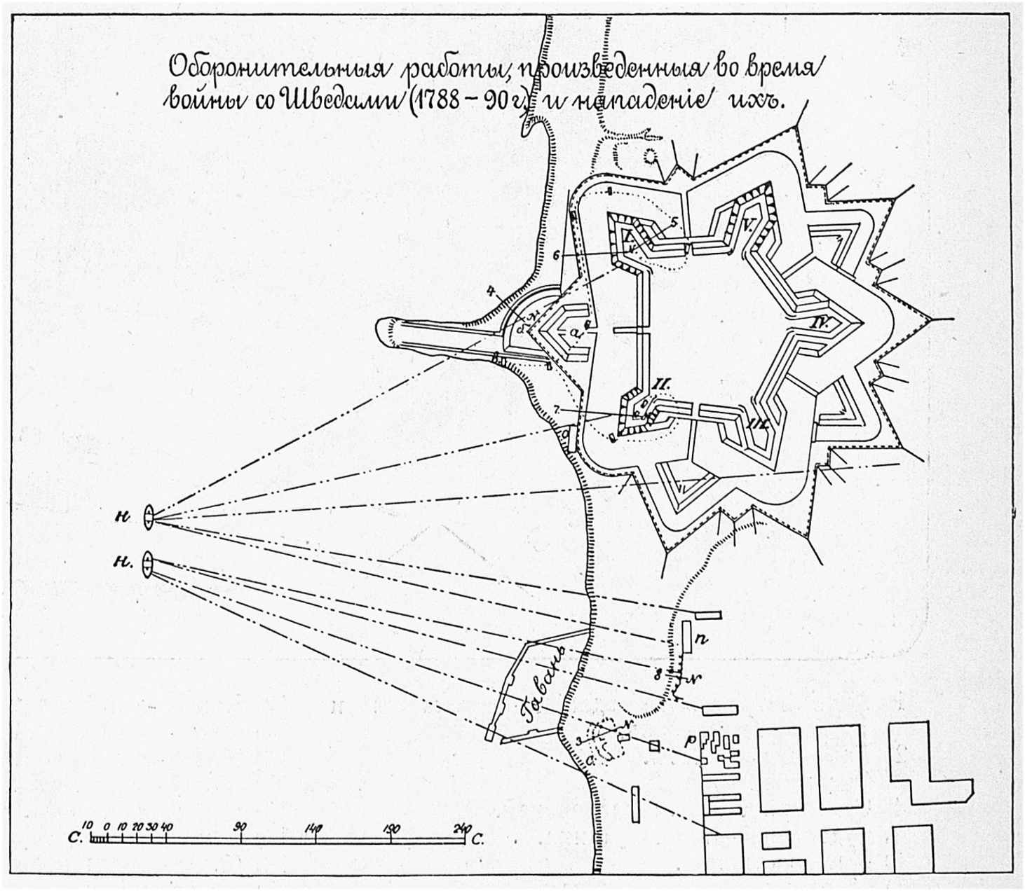 Оборонительные работы, произведенные во время войны со Шведами (1788-1790 годов) и нападение их