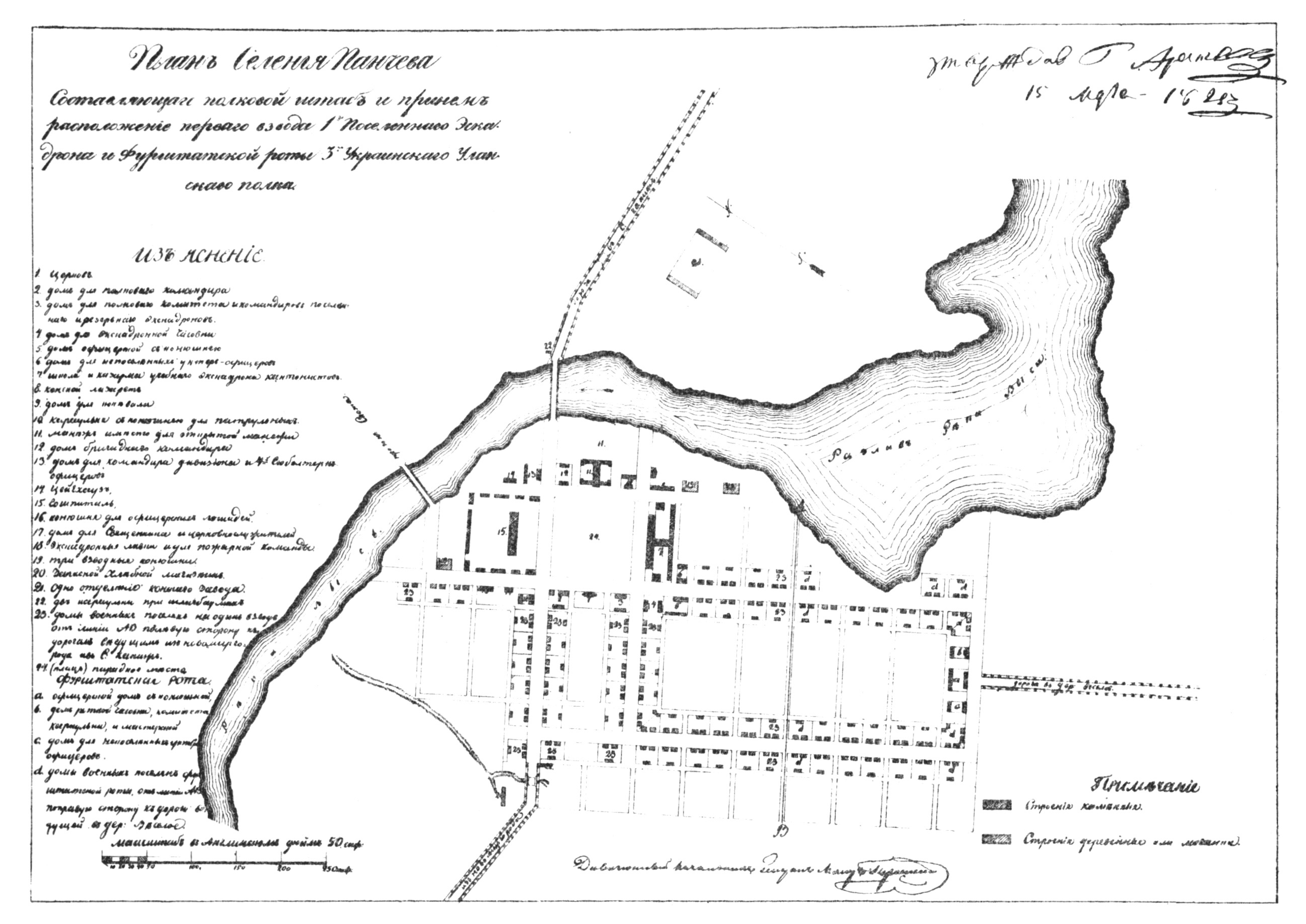Селение Панчева составляющее полковой штаб и при нем расположение первого взвода Первого Поселенного Эскадрона и Фурштатской роты Третьего Украинского Уланского полка