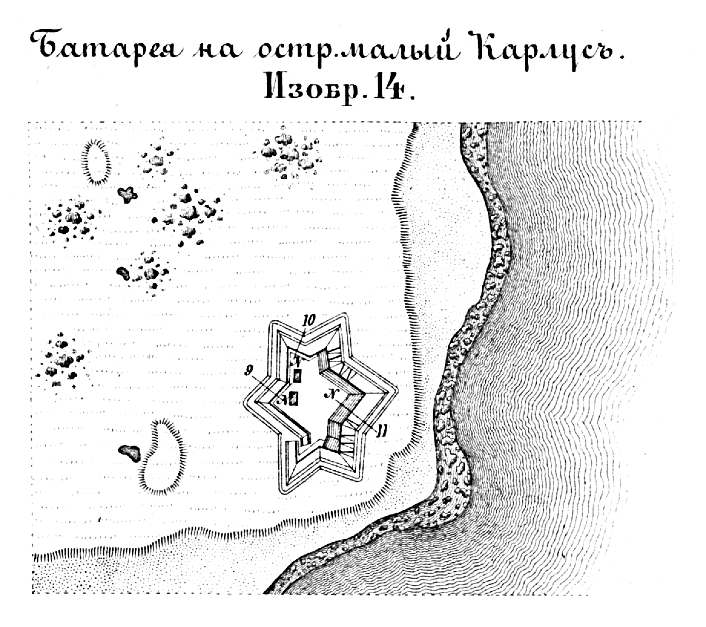 Способы укрепления. Изобр.14. Батарея на острове малый Карлус