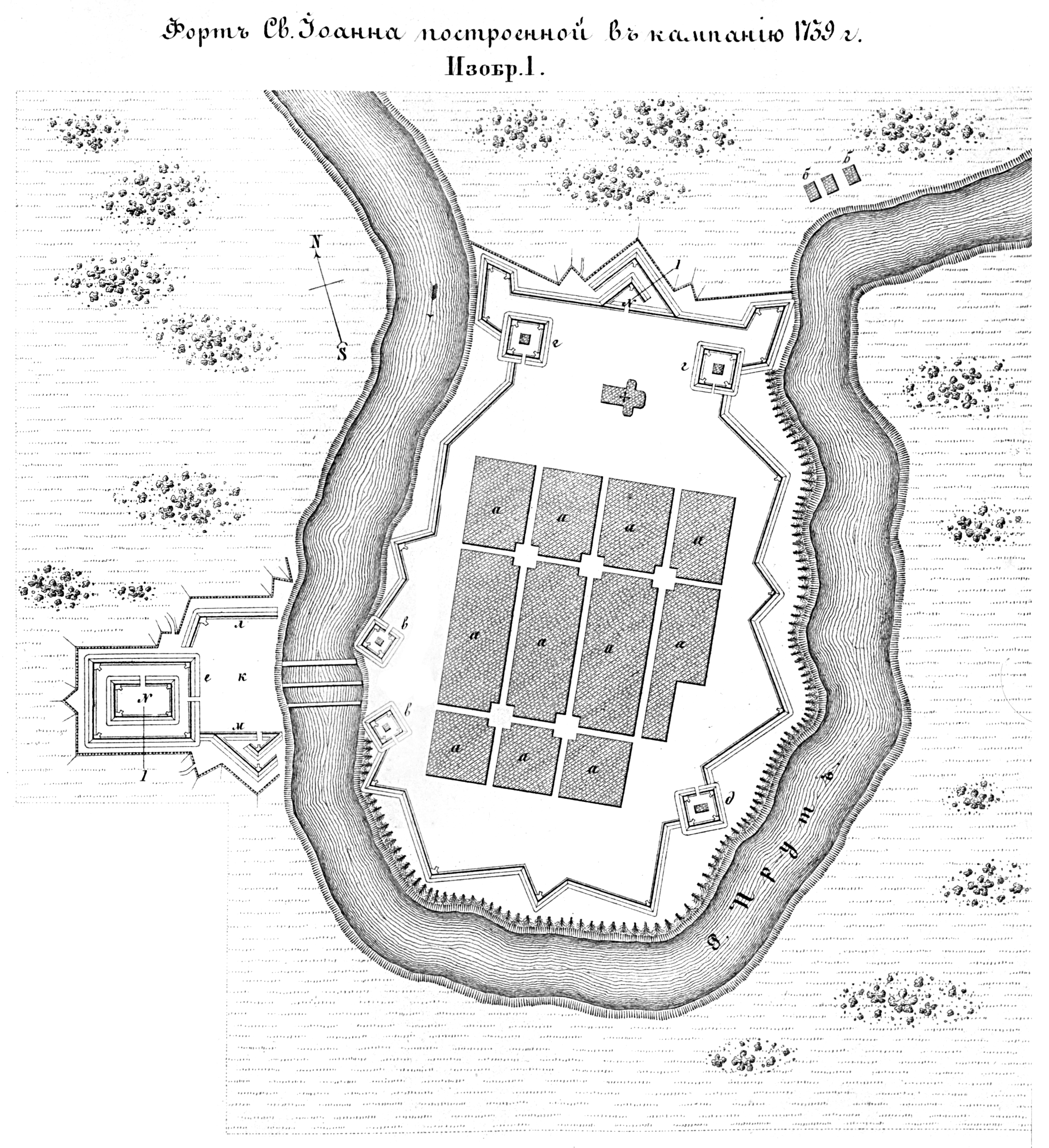 Полевые и временные укрепления. Изобр.1. Форт Святого Иоанна, построенный в кампанию 1739 года
