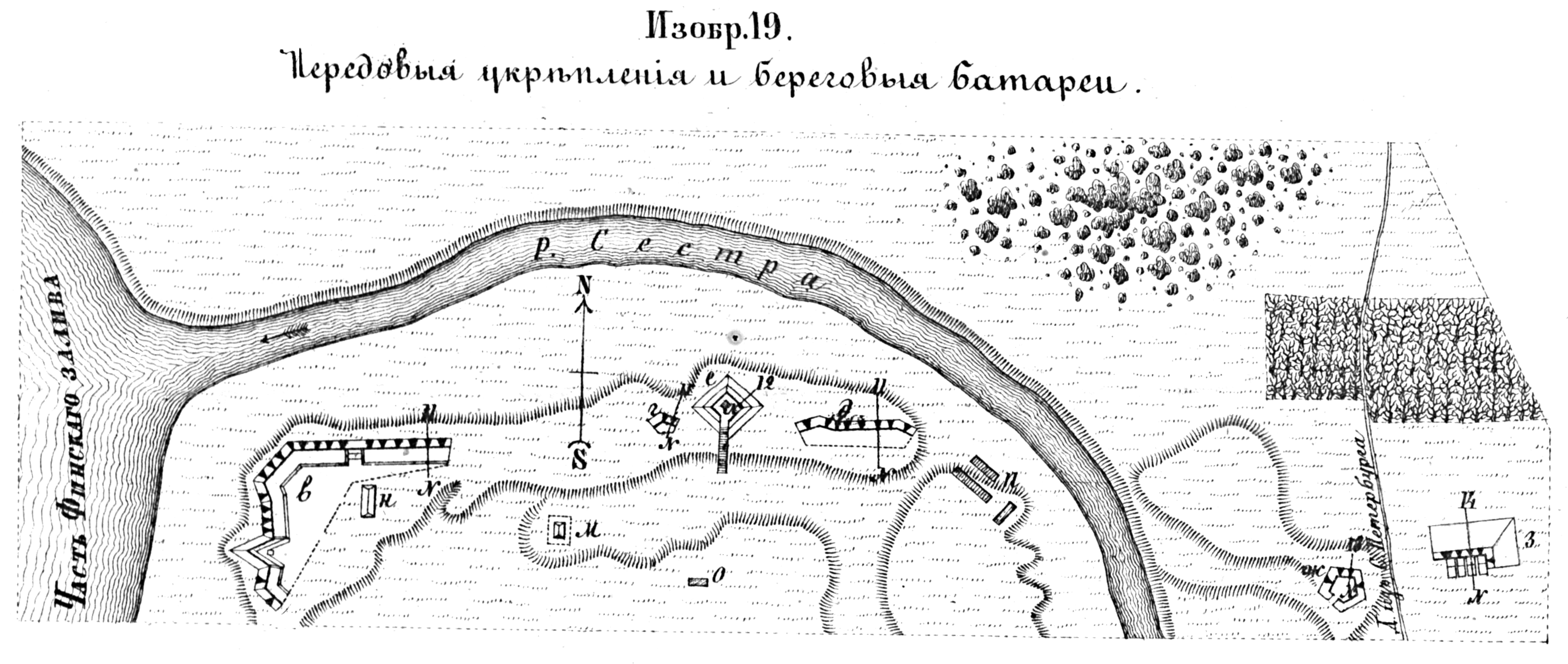 Полевые и временные укрепления. Изобр.19. Передовые укрепления и береговые батареи