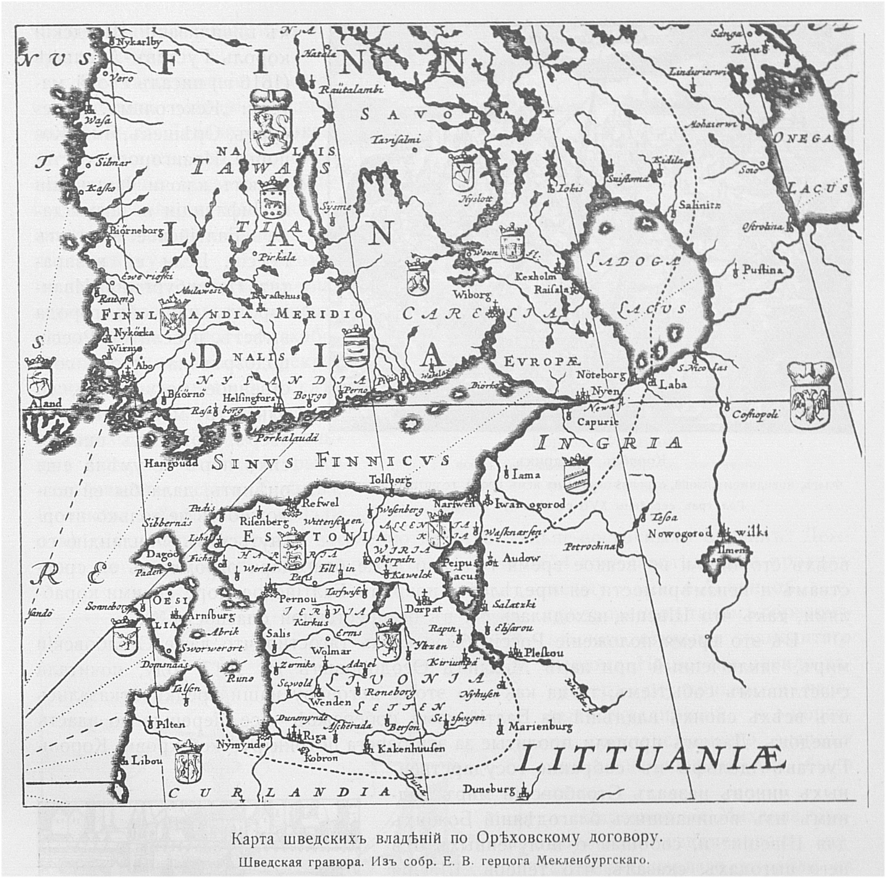 Карта шведских владений по Ореховскому договору