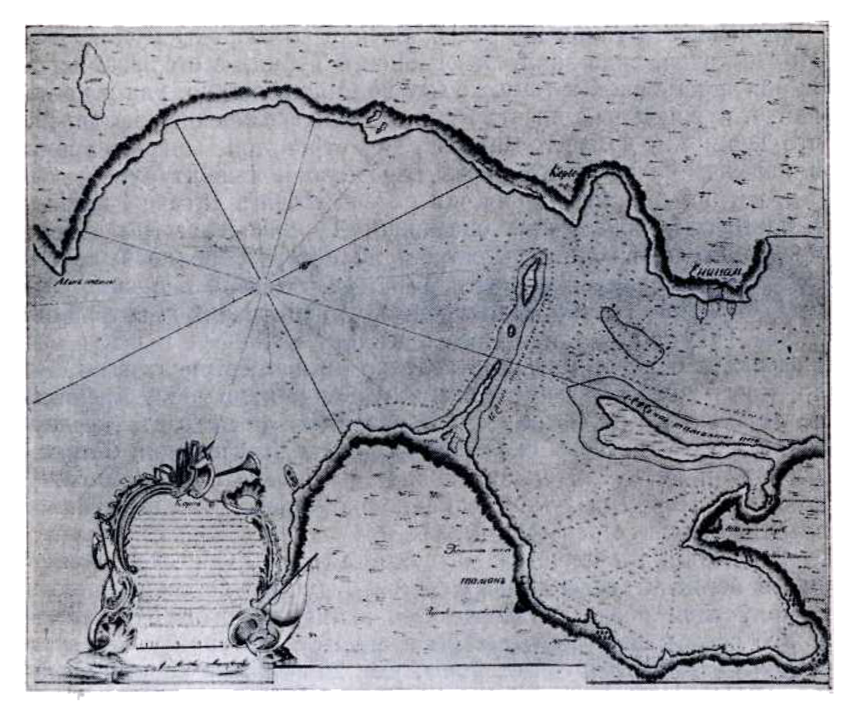 Керченский пролив с крепостями Керчью, Еникале и Таманью. Рукописная карта 1778 года (Государственный Исторический музей)
