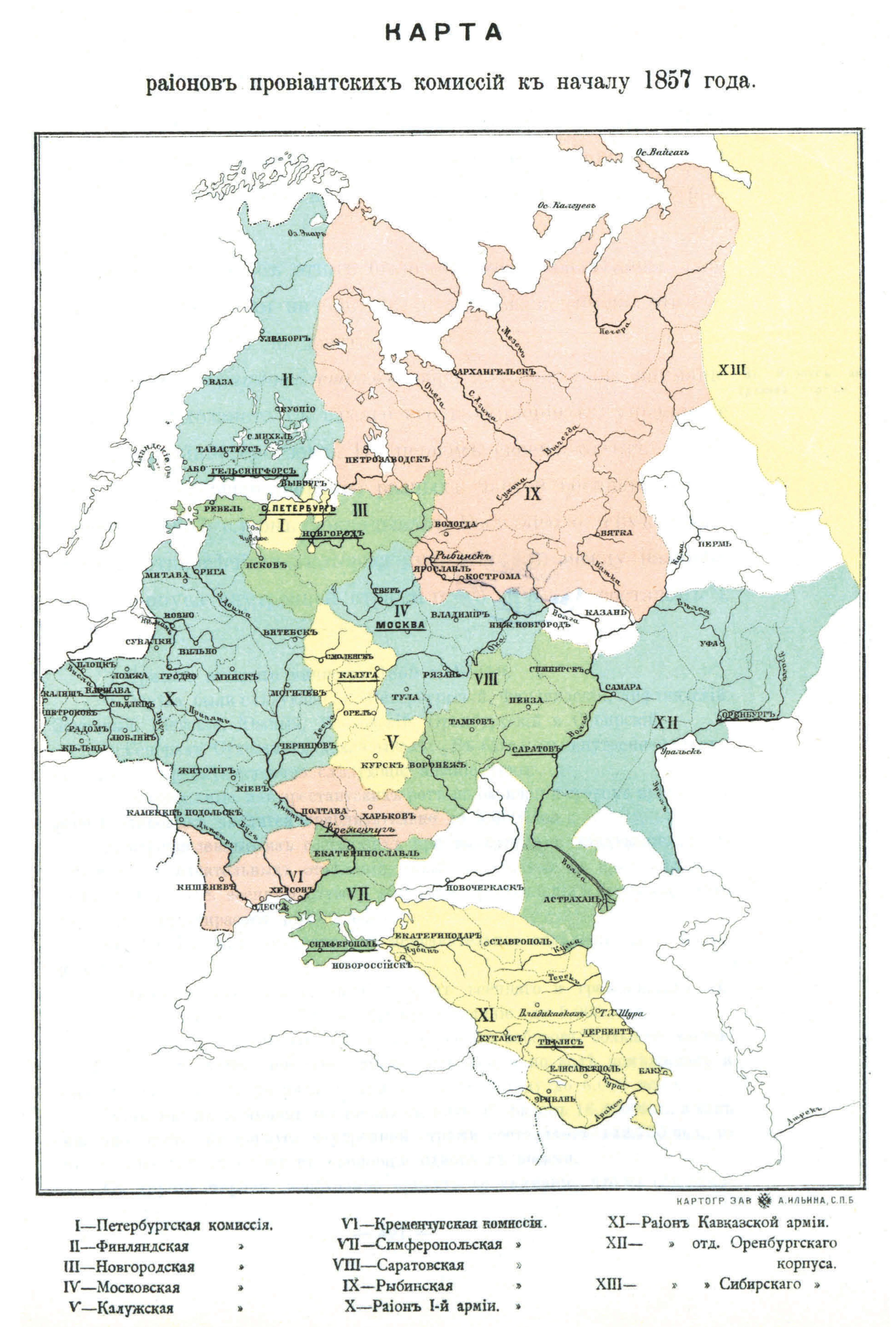 Районы провиантских комиссий к началу 1857 года