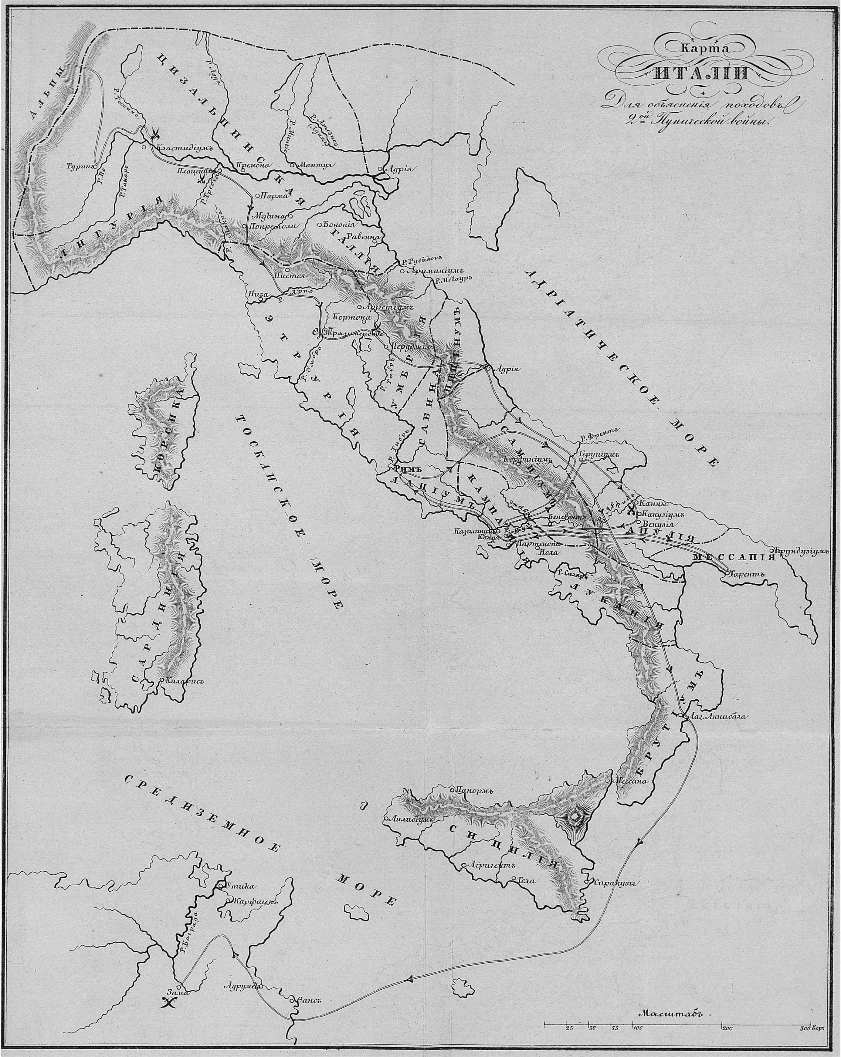 Карта Италии для объяснения походов 2-ой Пунической войны