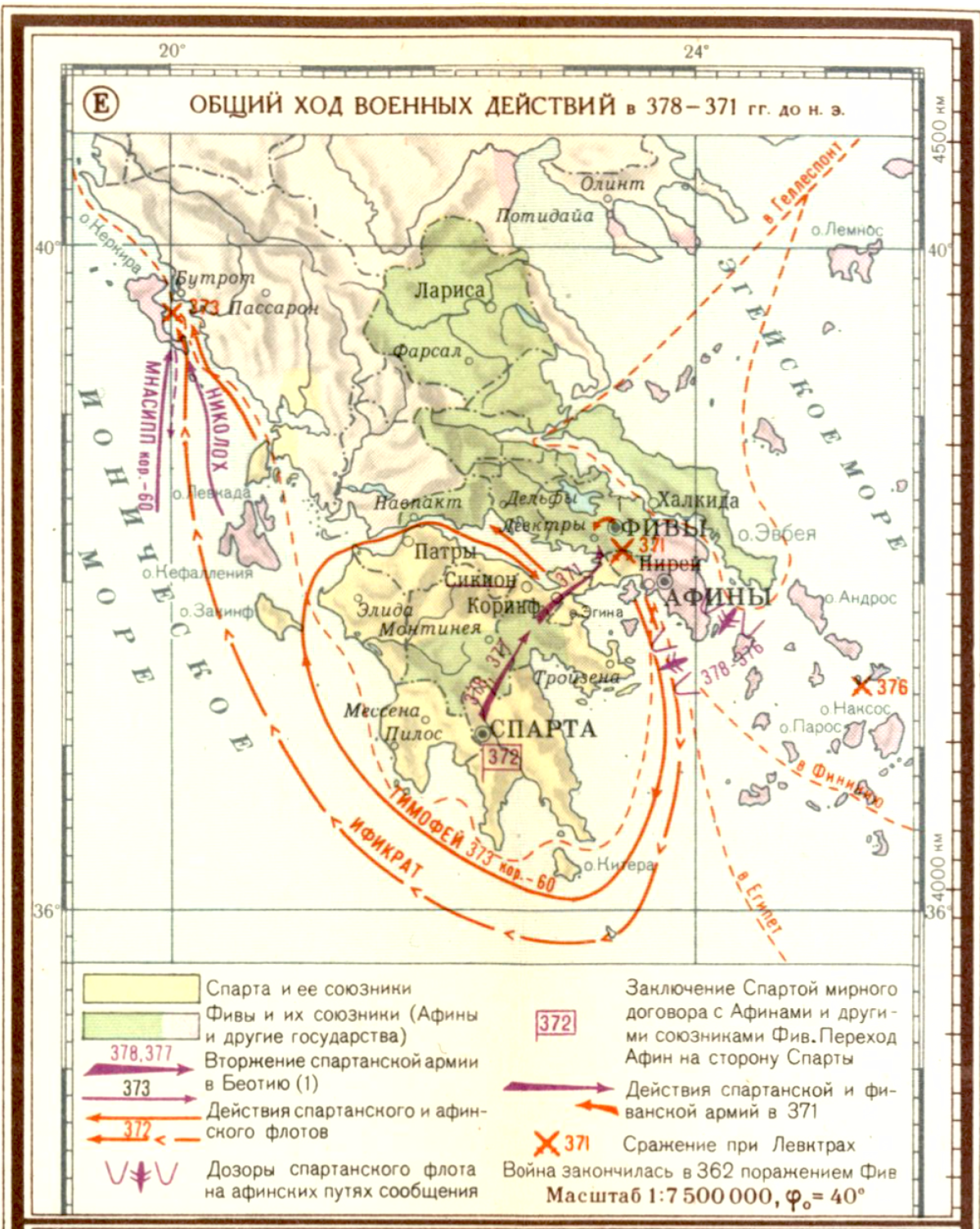 Войны Древней Греции и Древнего Рима в V-II вв до н.э. Беотийская война 378-362 гг до н.э. (Е) Общий ход военных действий в 378-371 гг до н.э.