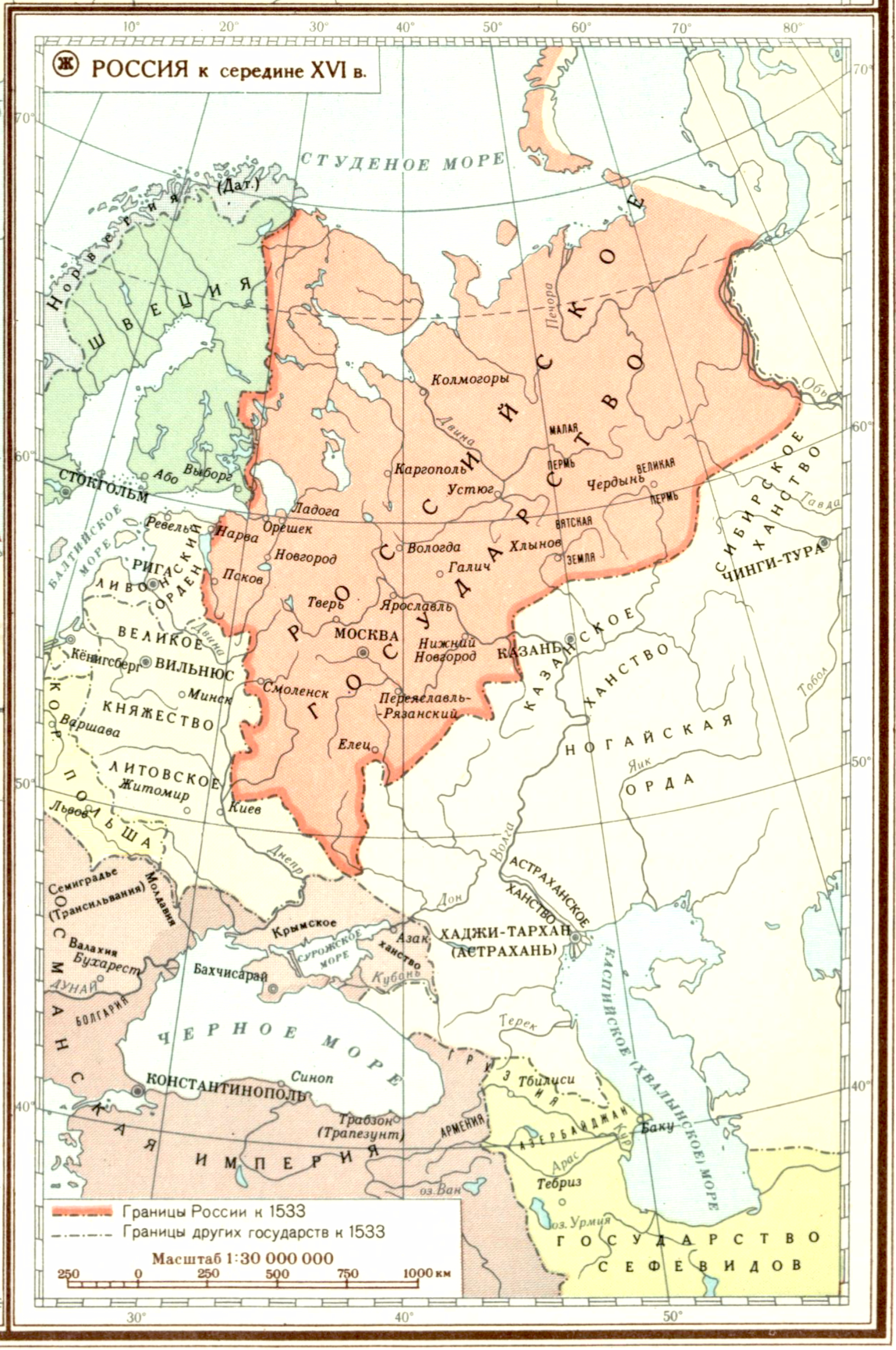 Борьба с иноземными захватчиками в период образования русского централизованного государства в XVв. и в первой половине XVI в. (Ж) Россия к середине XVI в.