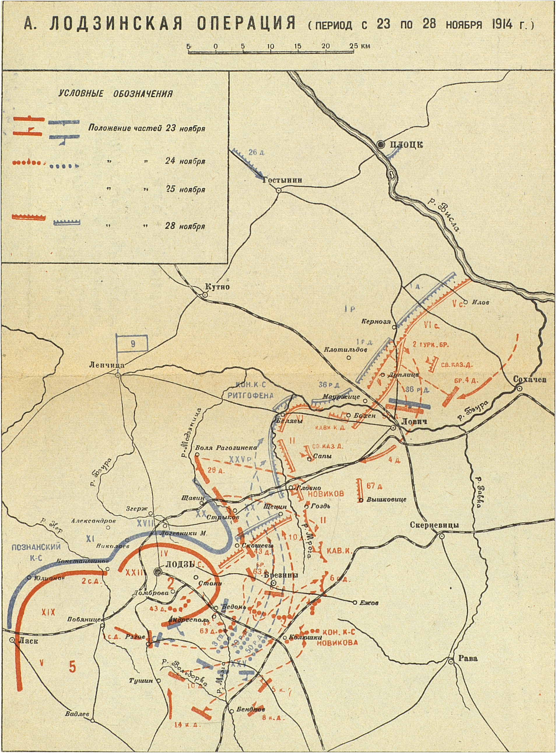 Кампания 1914 года. Русский театр. А. Лодзинская операция (период с 23 по 28 ноября)