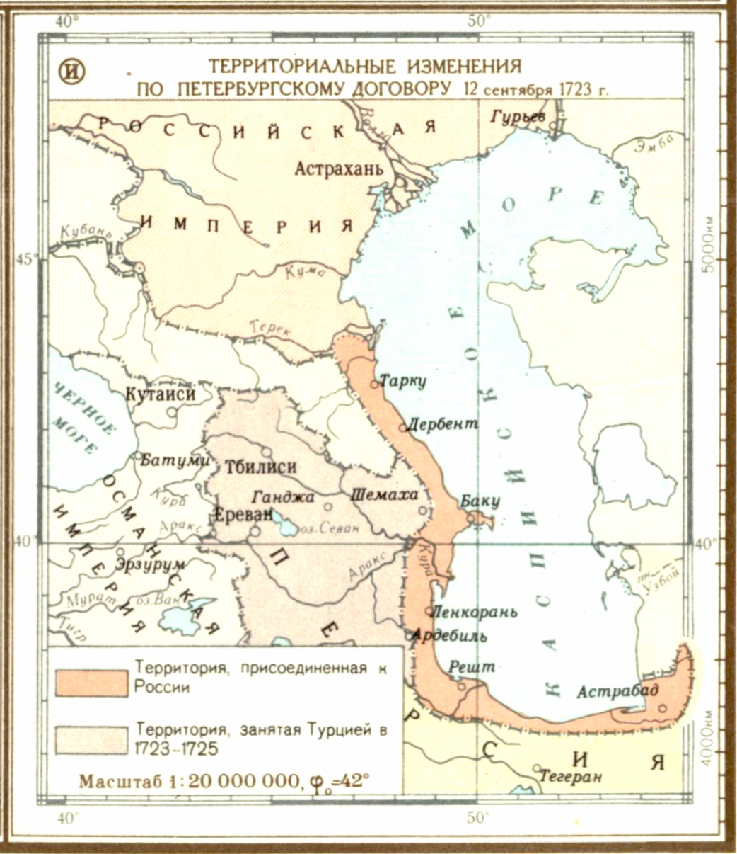Персидский поход русской армии и флота 1722-1723 гг. (И) Территориальные изменения по Петербургскому договору 12 сентября 1723 г.