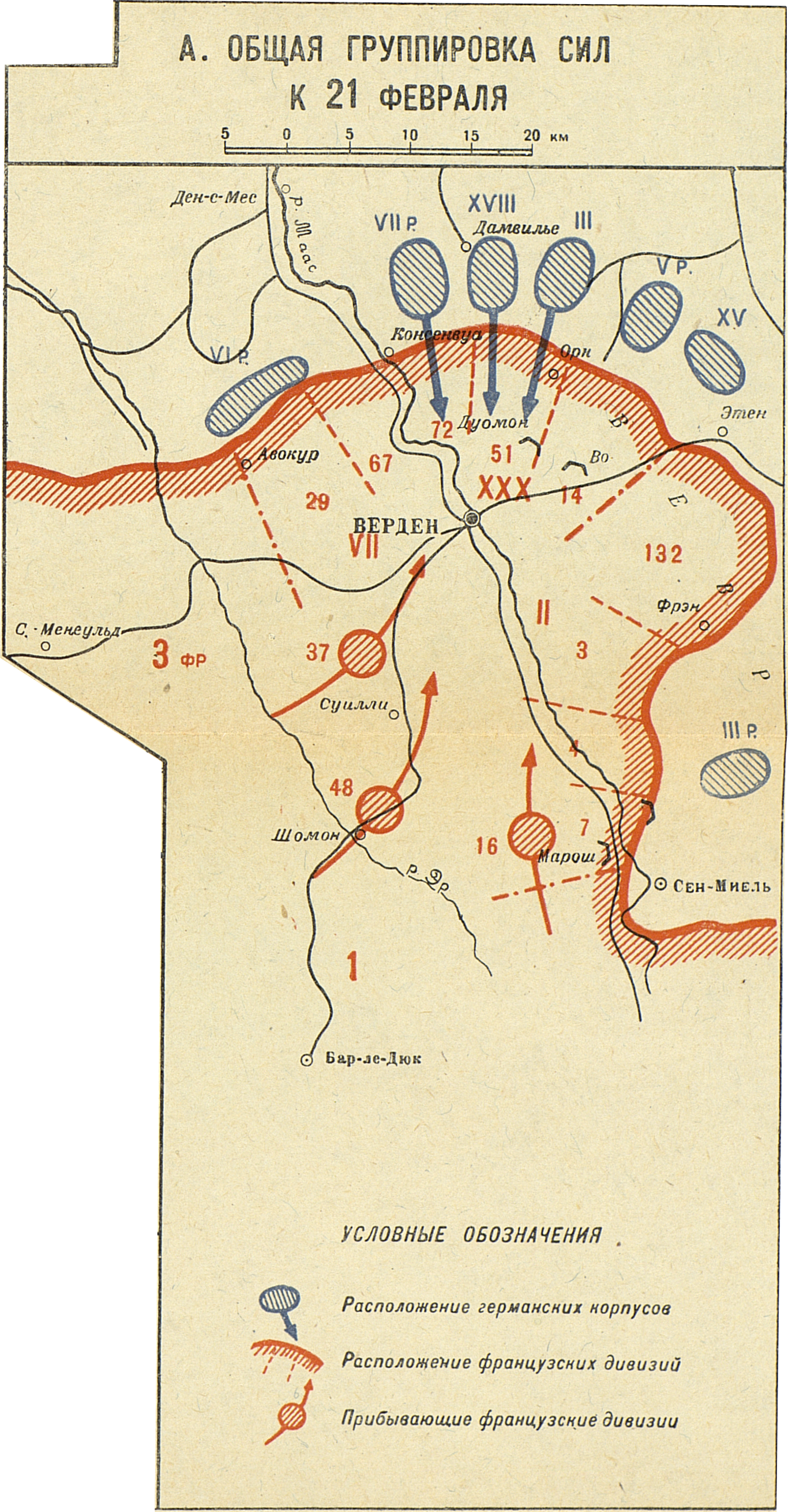 Кампания 1916 года. Французский театр. Верден. А.Общая группировка сил к 21 февраля