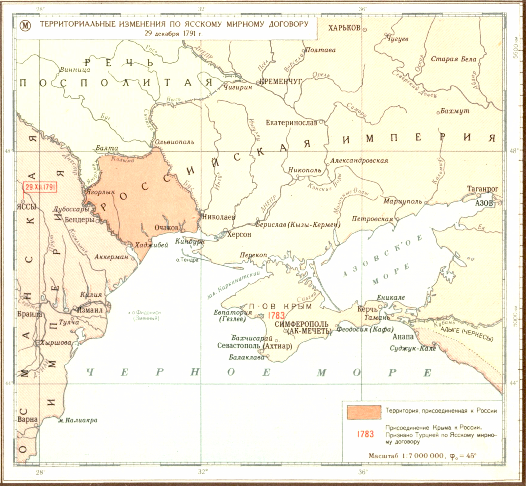 Русско-турецкая война 1787-1791 гг. (М) Территориальное изменение по Ясскому мирному договору 29 декабря 1791 г.