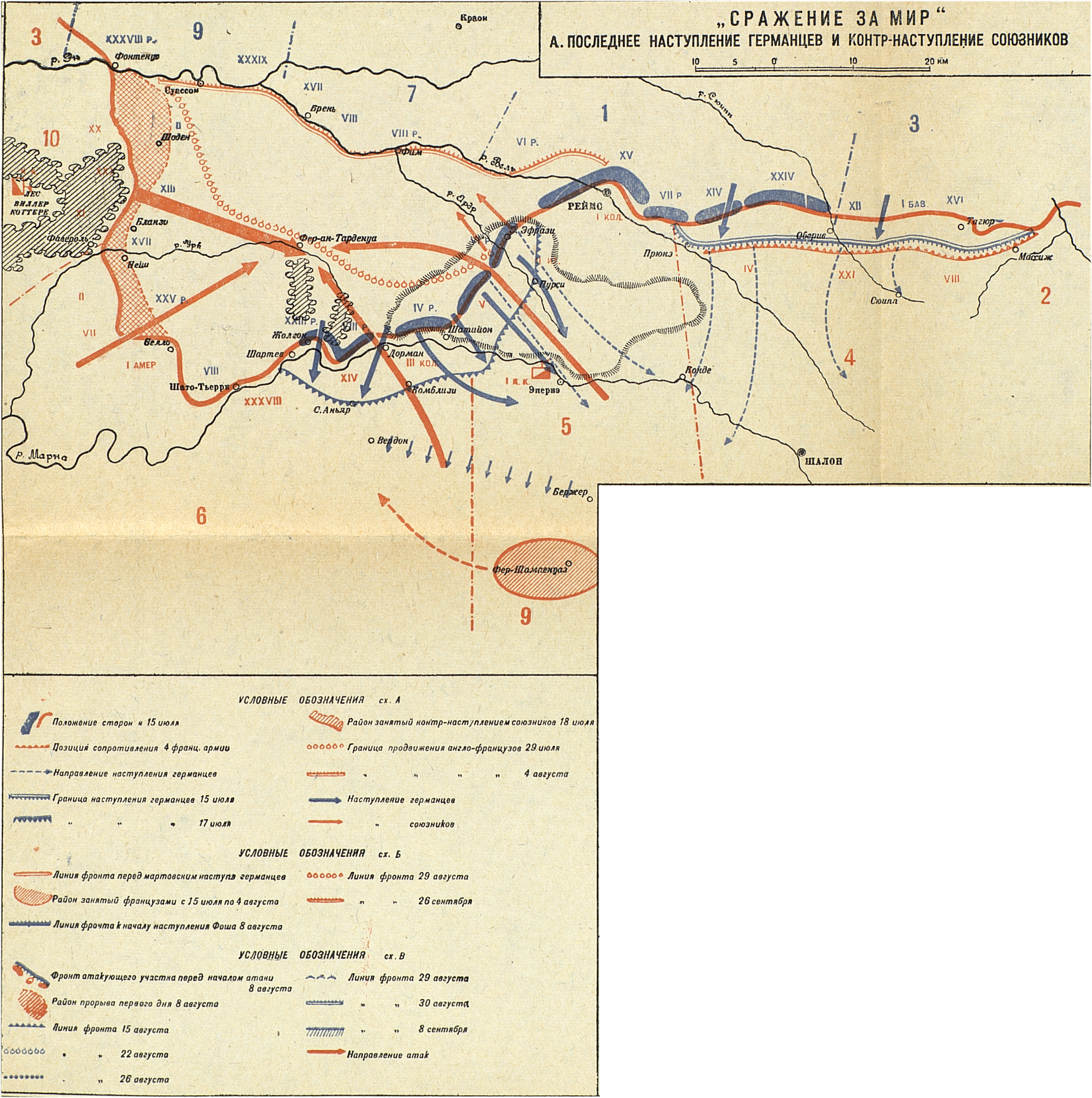 Кампания 1918 года. Французский театр. "Сражение за мир". А.Последнее наступление германцев и контр-наступление союзников (период с 15 июля по 4 августа)