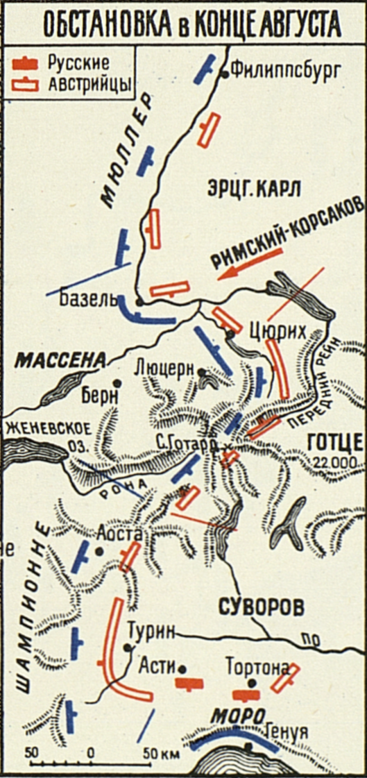 Швейцарский поход Суворова 1799 года. Обстановка в конце августа