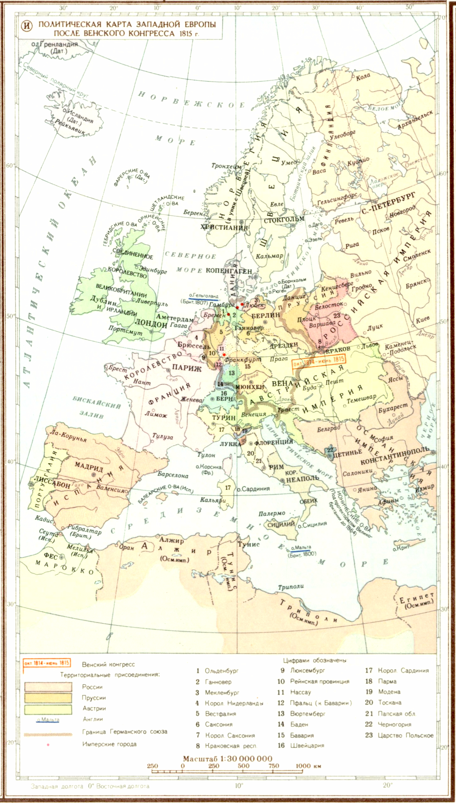 (И) Политическая карта Западной Европы после Венского конгресса 1815 г.
